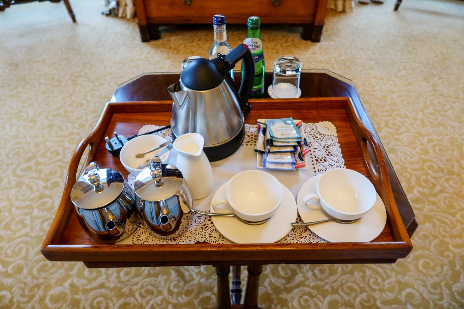 While there were no tea and coffee-making facilities in the room, there was a note saying we were welcome to call for a "hospitality tray" and they would bring it straight up. Sure enough, a quick phone call and this was delivered.