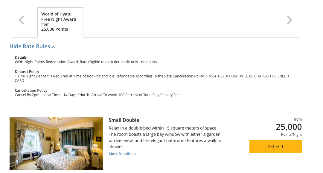 Rates for rooms at Crossbasket Castle start from $270 per night for a small double room of 160 square feet, or you can redeem 25,000 World of Hyatt points per night. Hyatt points are amongst the most valuable hotel points you can collect, so redeeming them for just over one cent each was not an optimal use.
