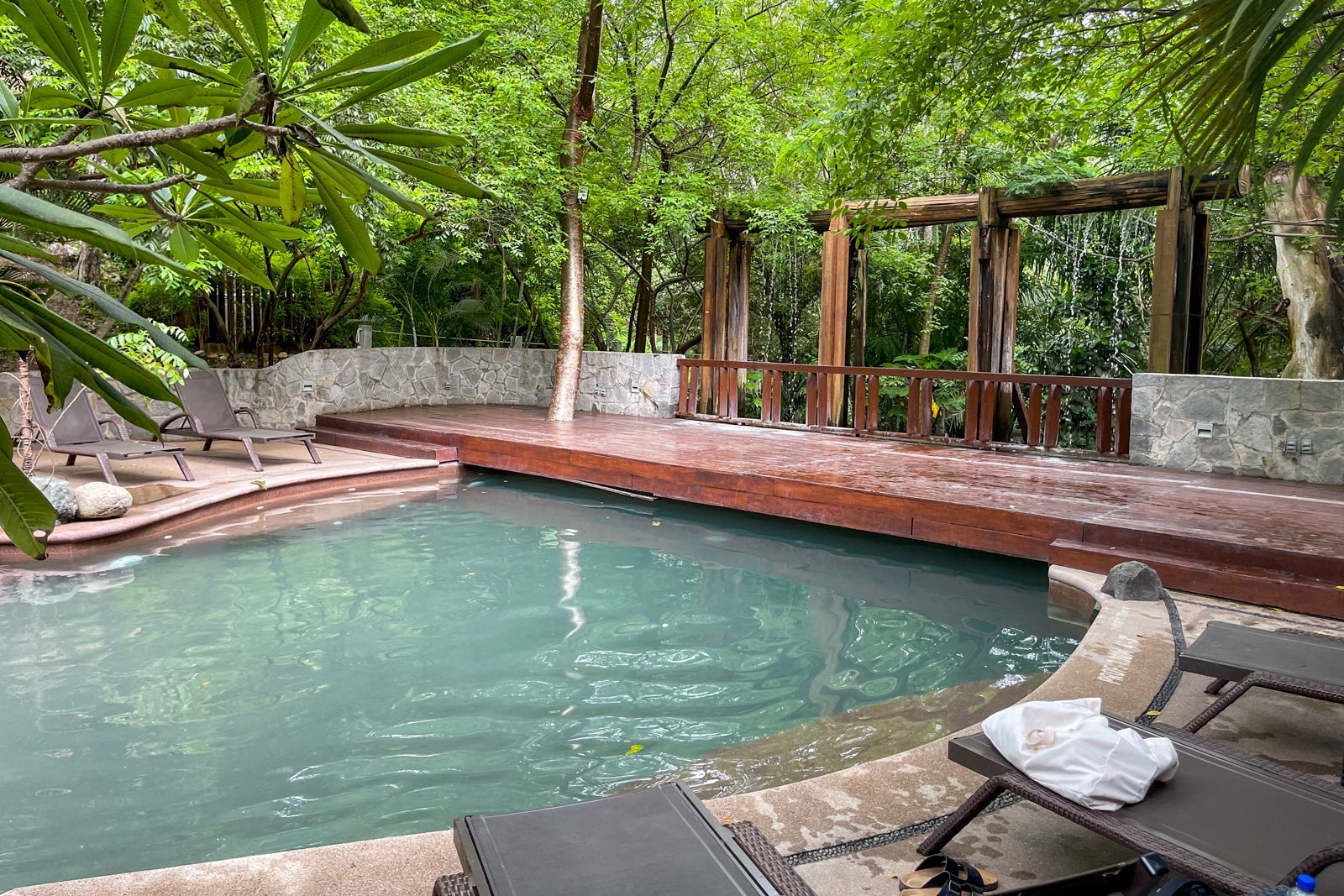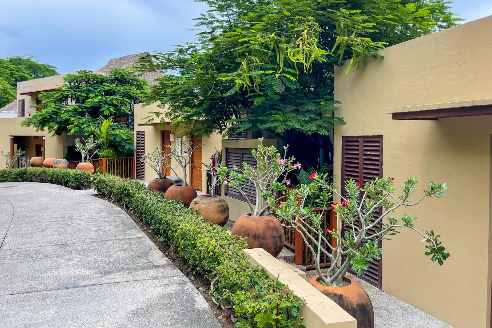 Because of the resort's location in Las Cinco Cruces, developers were careful to leave much of the mature jungle intact while constructing it. As such, you'll notice that the 118 rooms are pressed against the cliffs and surrounded by greenery, with a small stream running through the property.