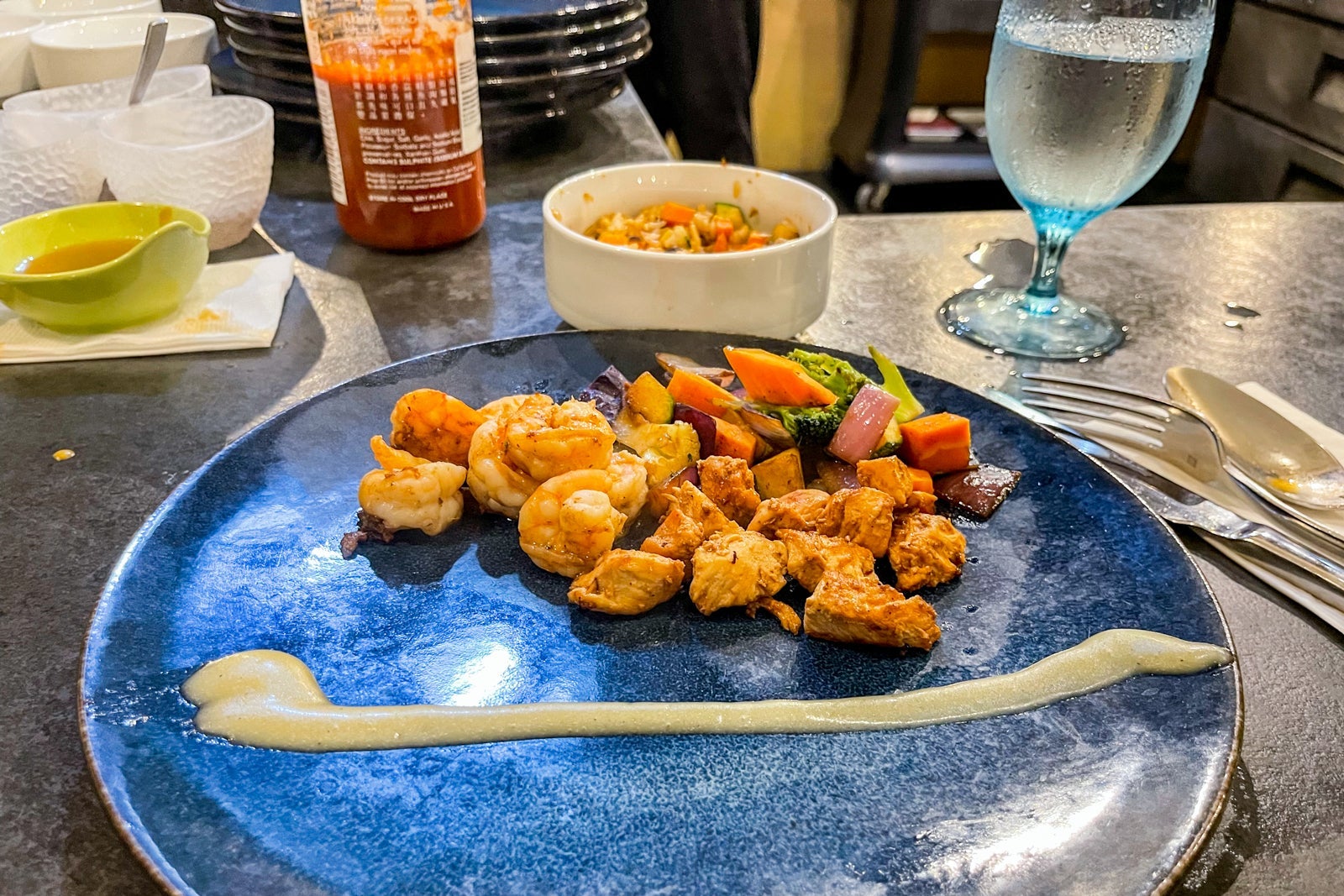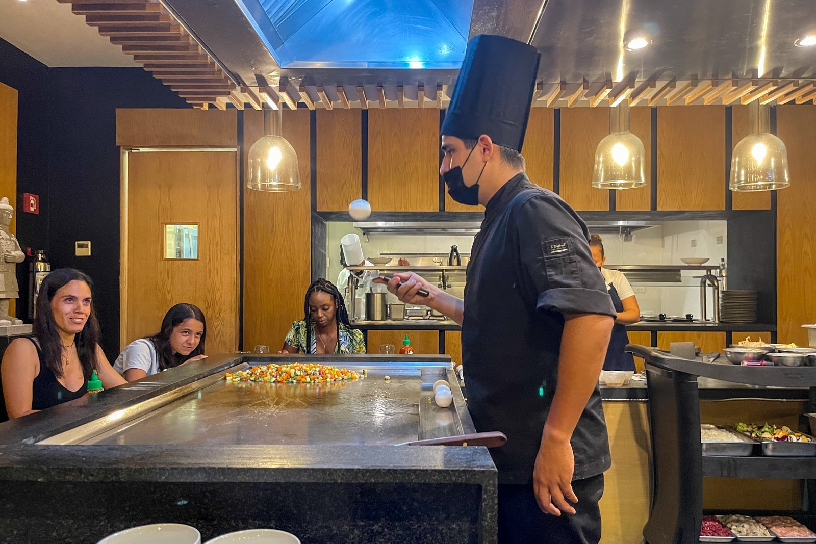 For our first night, my aunt and I dined at Komorebi Teppanyaki, a Japanese-inspired restaurant. Instead of offering a traditional menu, the eatery invites guests to sit around a metal grill table while the chef cooks fried rice, an assortment of vegetables and stir-fried chicken, shrimp and steak in front of them, juggling knives and eggs throughout the experience. The entertaining show saved the meal, as the food was disappointing due to a lack of flavor and too much salt and butter.
