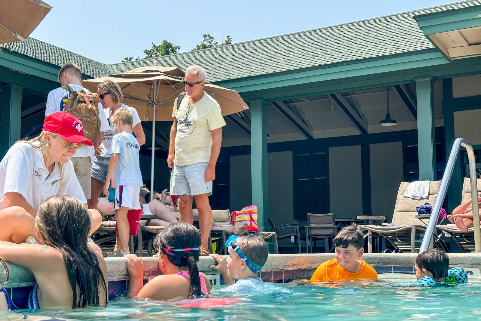 The pool at Disney's Beach House is smaller but only a short walk away from the beach. Both pools hold daily activities like trivia and games. During our visit, the activities team led the kids on a "treasure hunt" by hiding gems all around the pool.