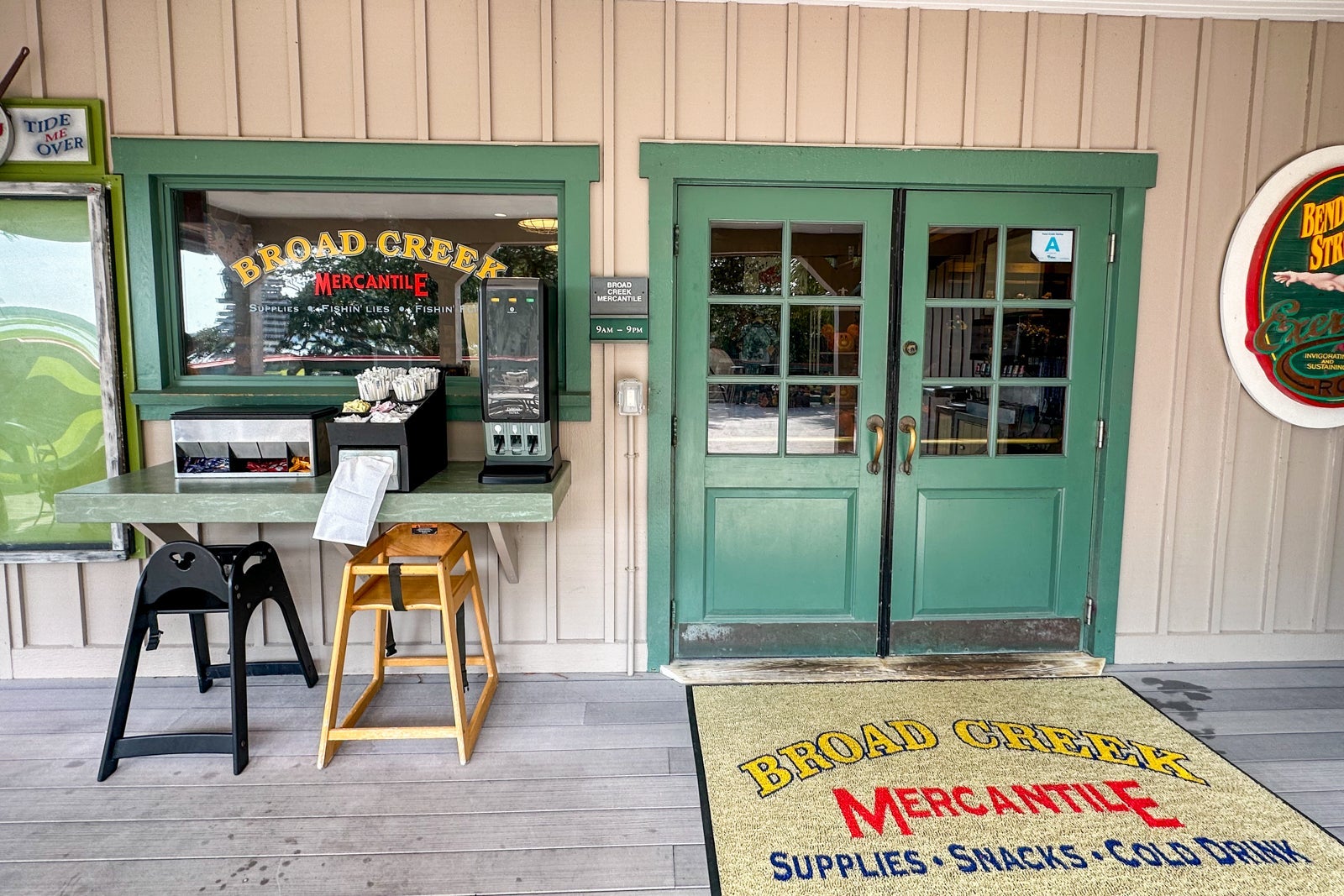 Next door to Tide Me Over, you'll find the Broad Creek Mercantile, a gift shop with Disney souvenirs, travel necessities you may have forgotten to pack, snacks and beverages to keep you going after the dining locations close.