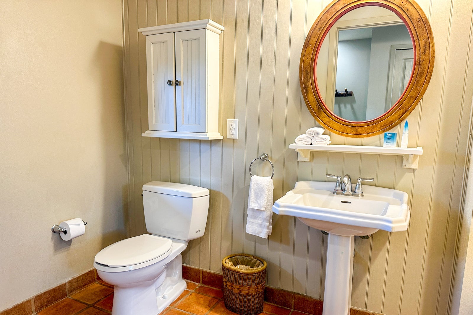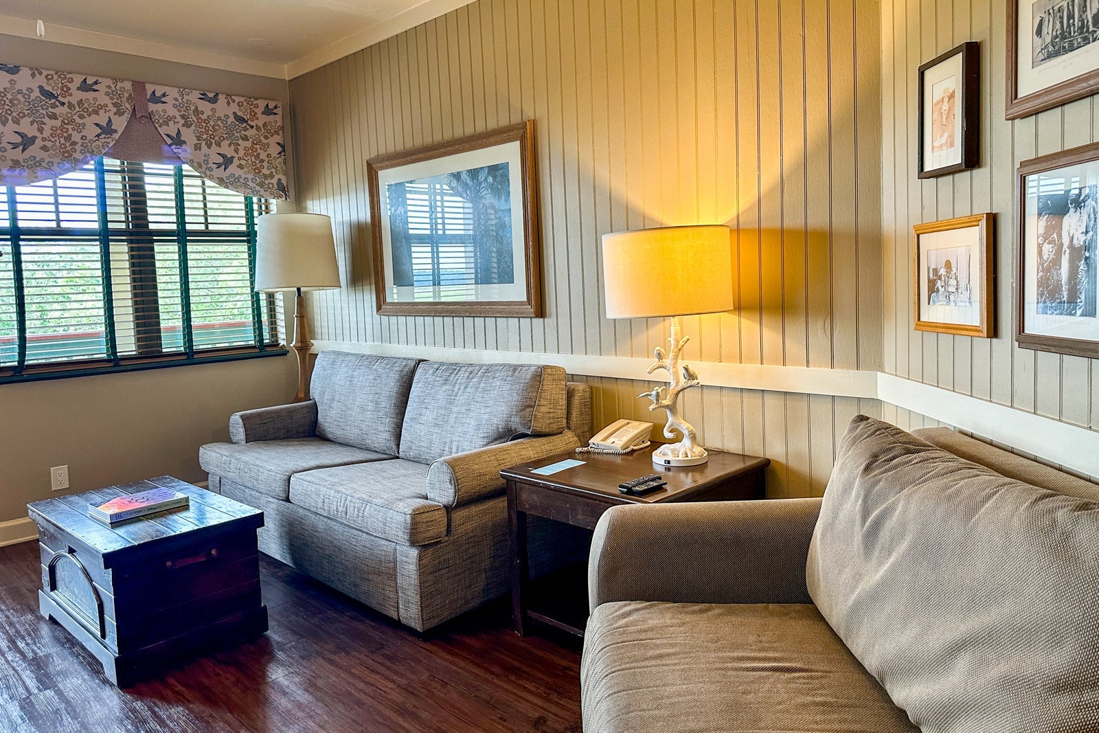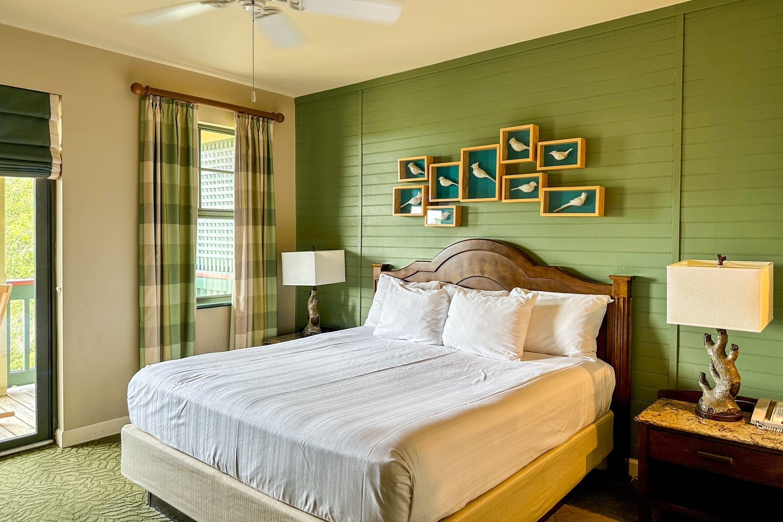 The interior decor echoed the resort's lodge theme, with nature-inspired decor, wood furnishings and artwork featuring woodland animals. The design, paired with the subdued color scheme, made the room feel as serene as the beautiful surroundings outside the door.