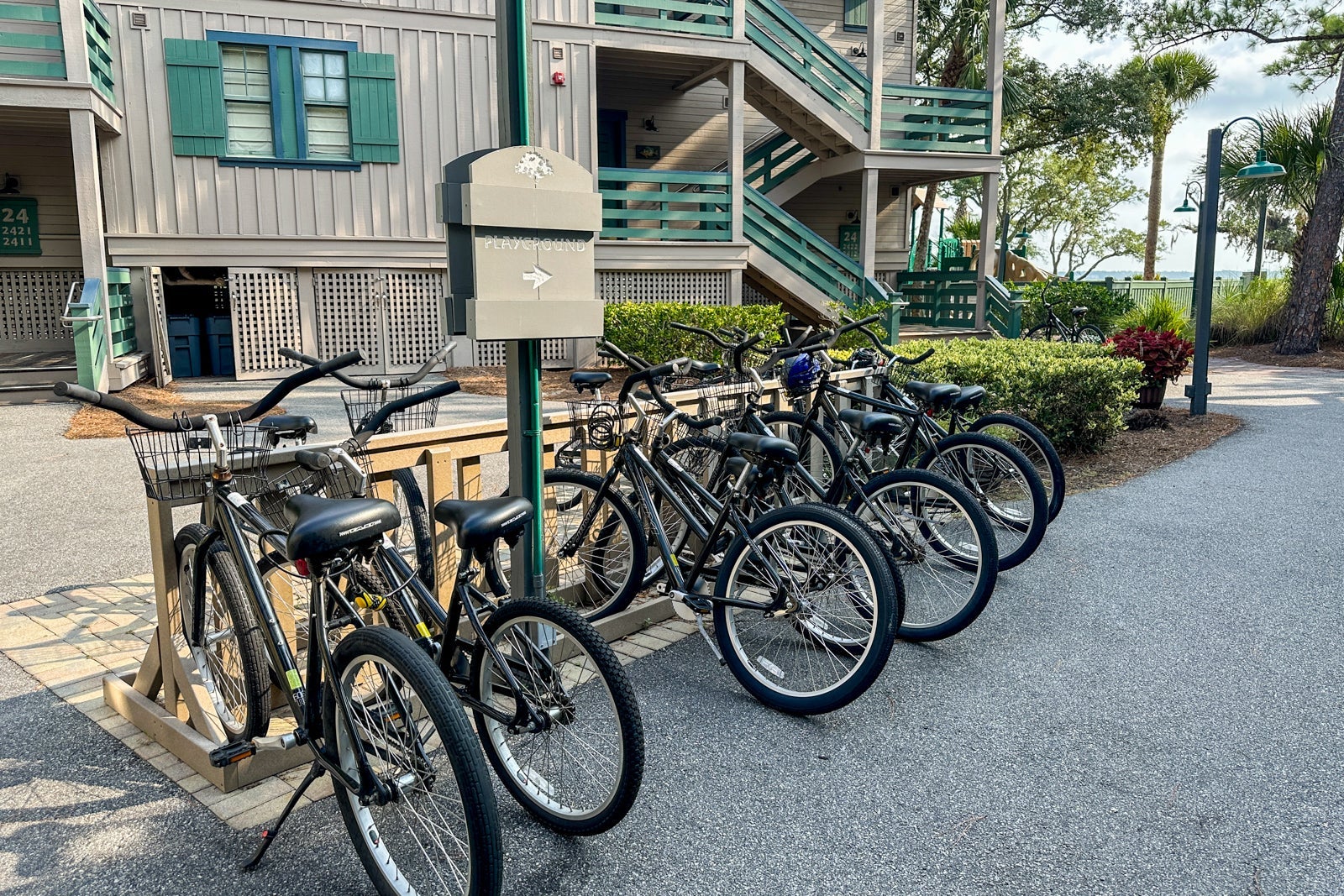 The resort has a basketball court on-site and rents tennis equipment that guests can use at one of Hilton Head's hundreds of tennis courts. You can also rent bikes at the resort that you can take all over the island (but not off the island) starting at about $25 per day or $40 for the length of your stay. They had bikes sized for kids and adults, as well as bike trailers and seats for younger kids.