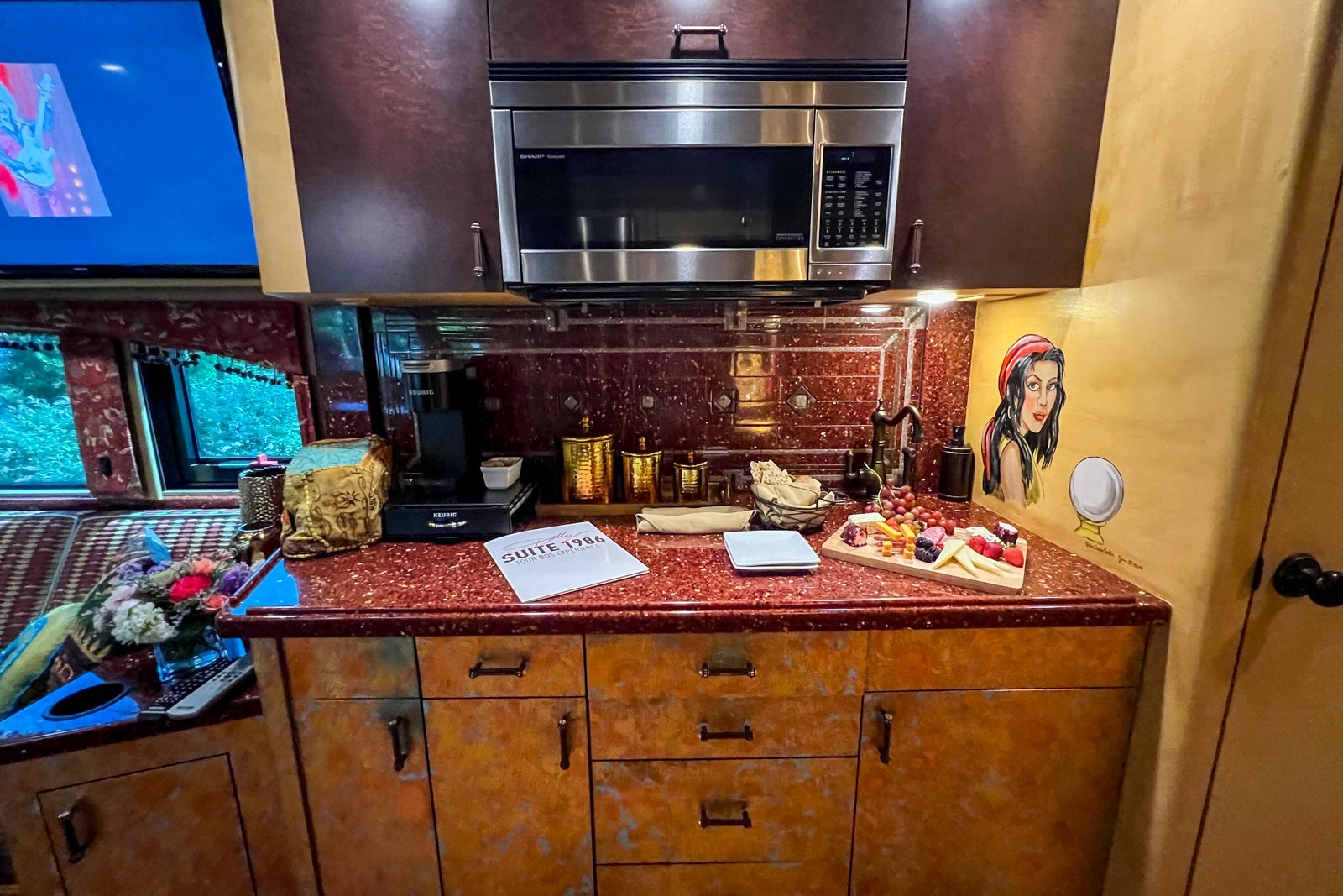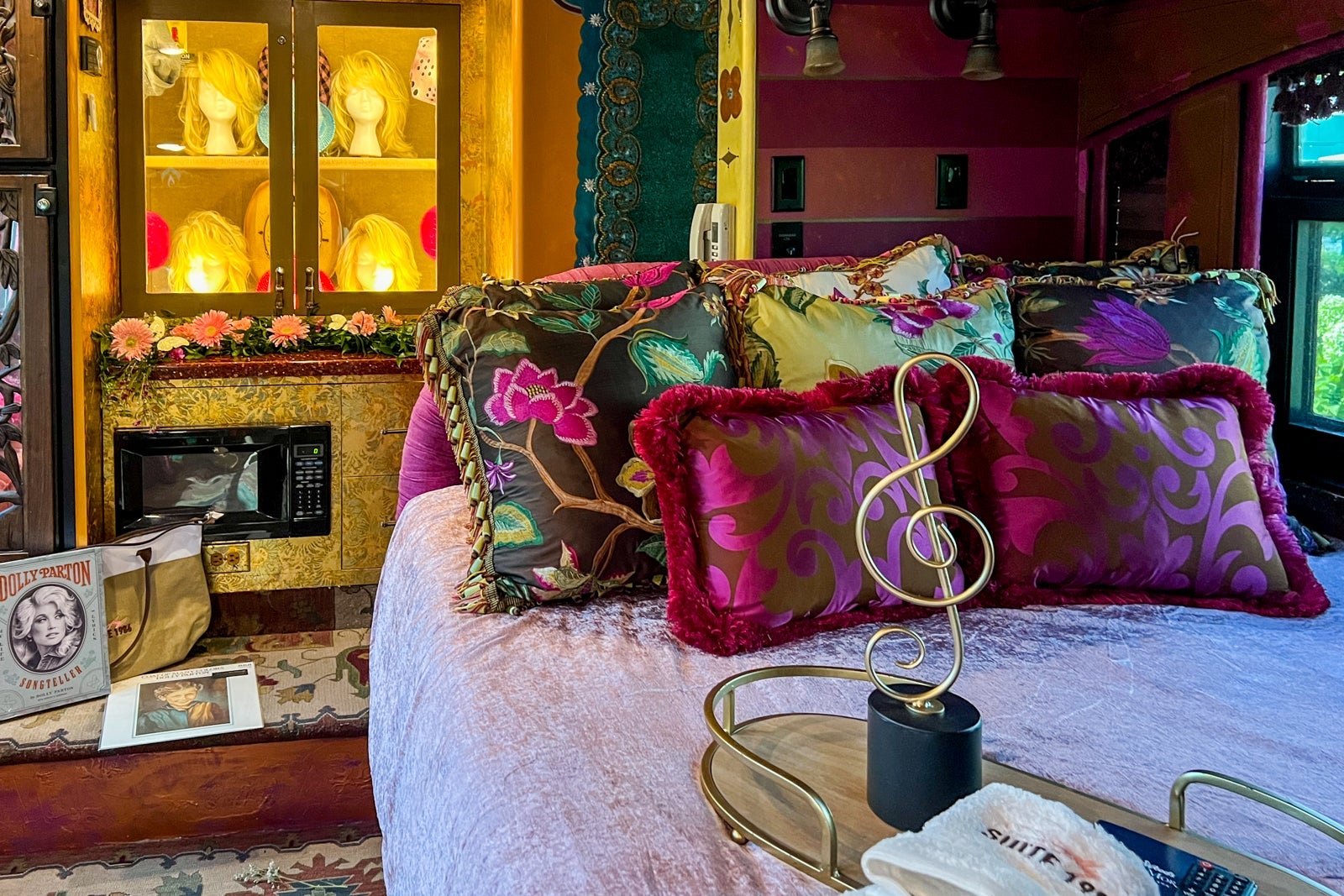 After covering the announcement of the tour bus experience and spending the night at the Dolly Parton-themed Graduate Hotel in Nashville, I knew this experience was something I'd have to do one day. Luckily, Dolly's team knew about my love of the country goddess and extended an invitation to be one of the first to lay my head in the most glitzy "suite" of them all.