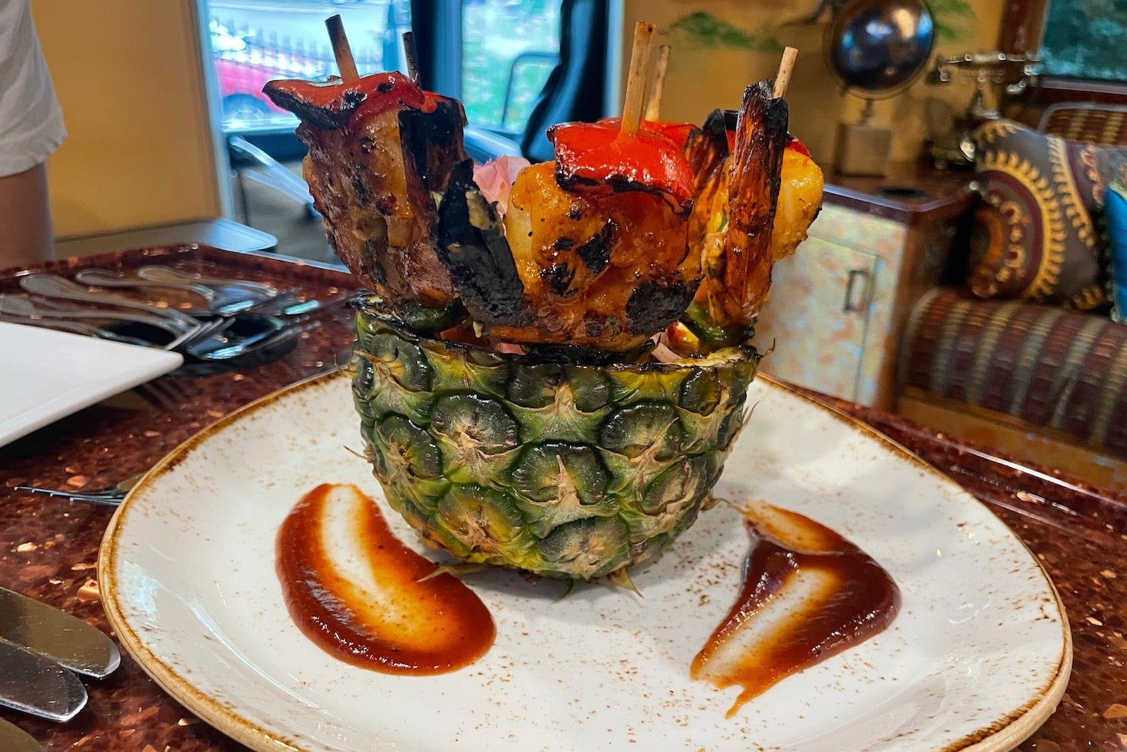 Instead, a pineapple stuffed with grilled shrimp and red-pepper skewers and a pineapple-onion salsa made its way through the doors of the bus.