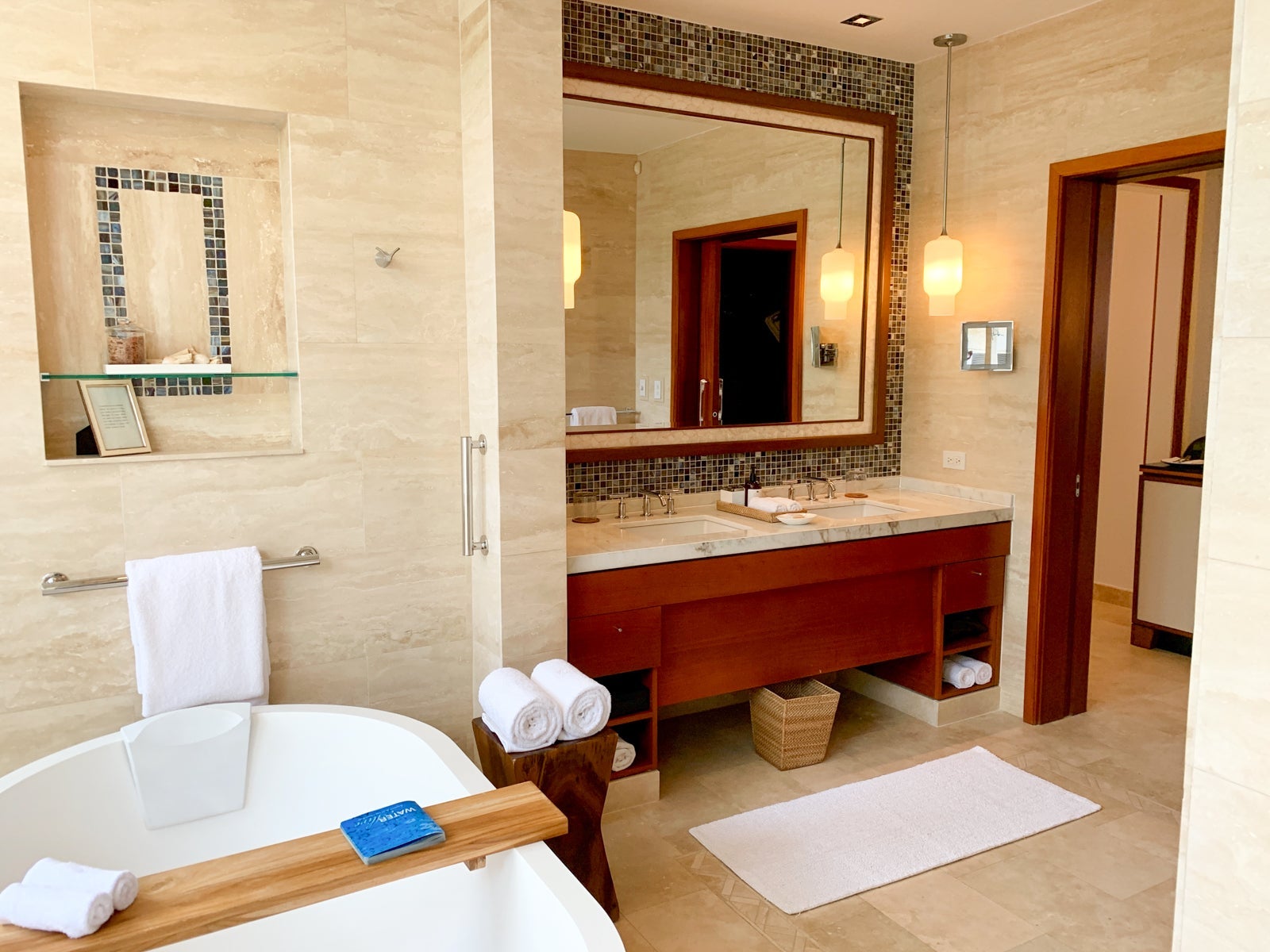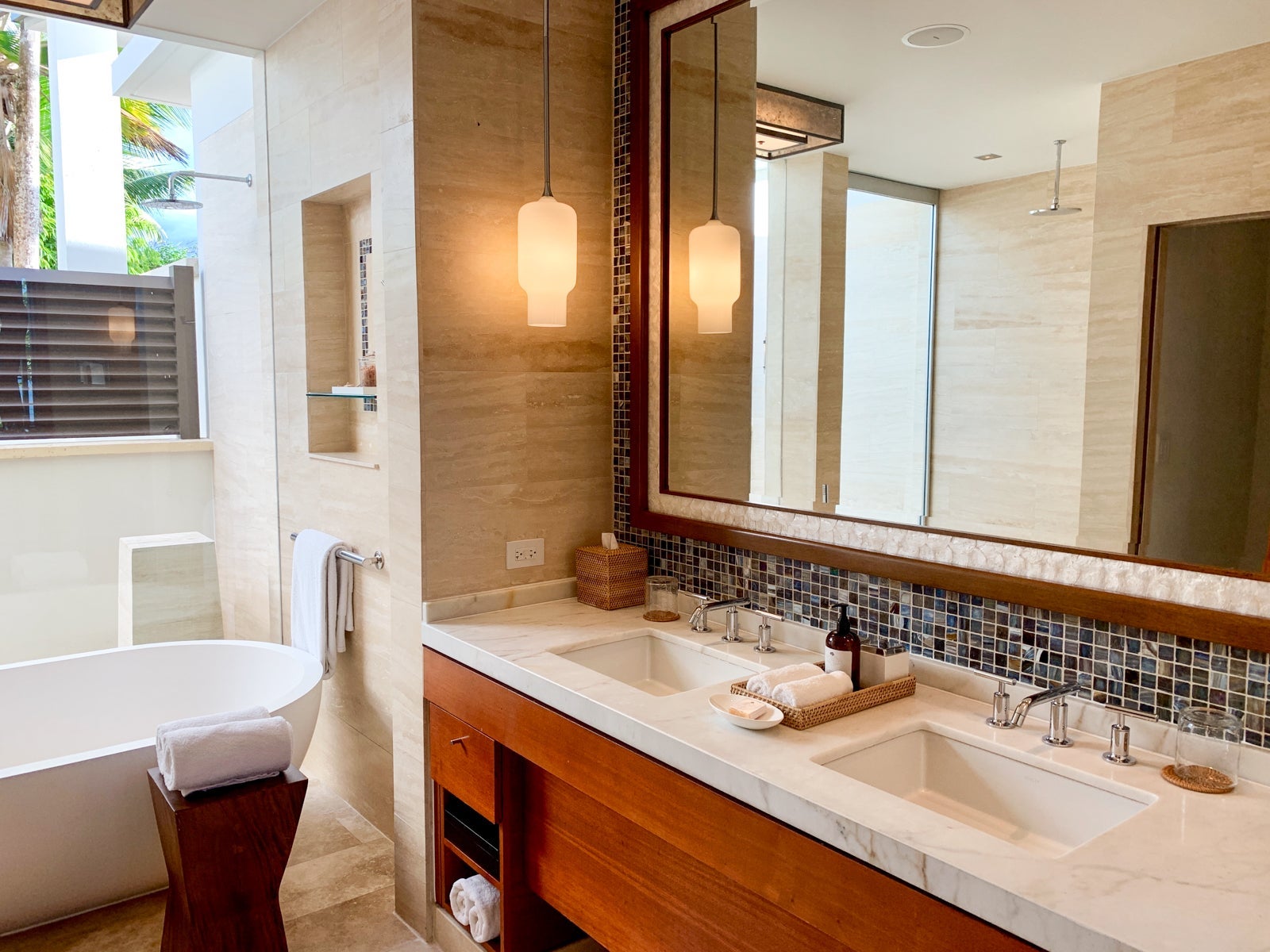 The bathroom was another example of the resort seamlessly blending the inside and out. It was phenomenally spacious and also had floor-to-ceiling glass windows, though here it didn't open up the entire width of the room.