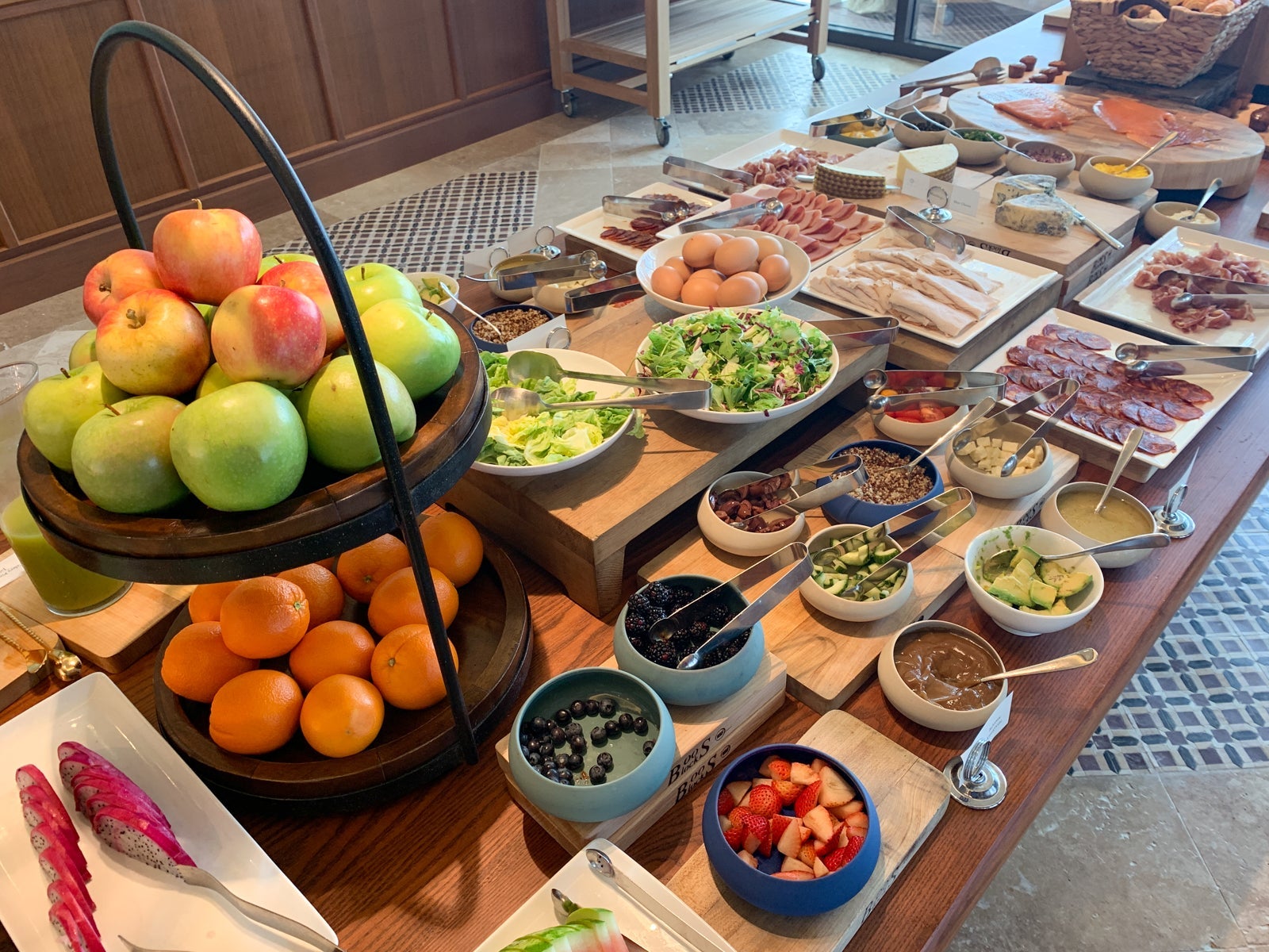 A buffet was set up in a room adjacent to the main dining room, which offered the typical breakfast buffet, though the food looked very fresh.
