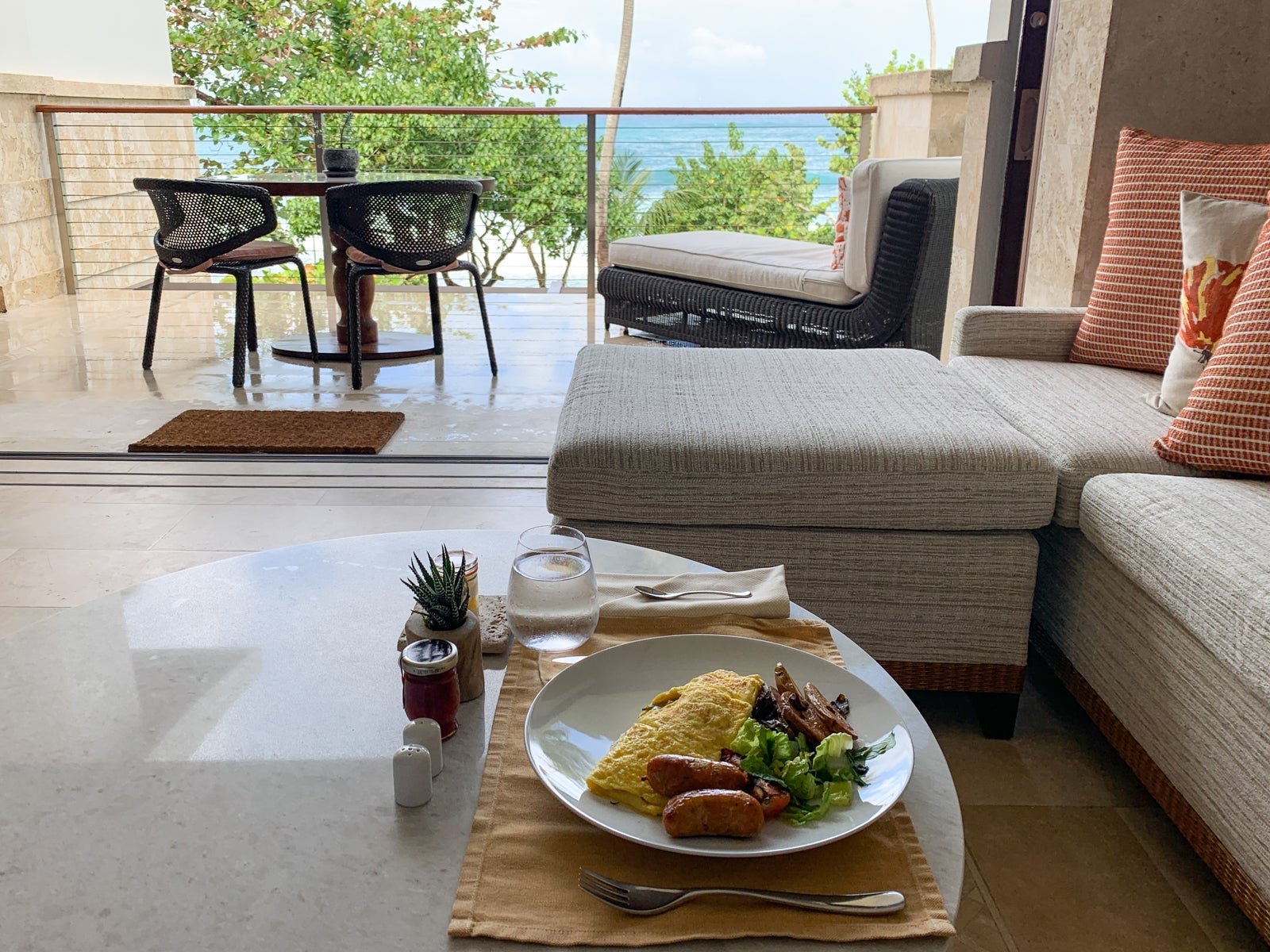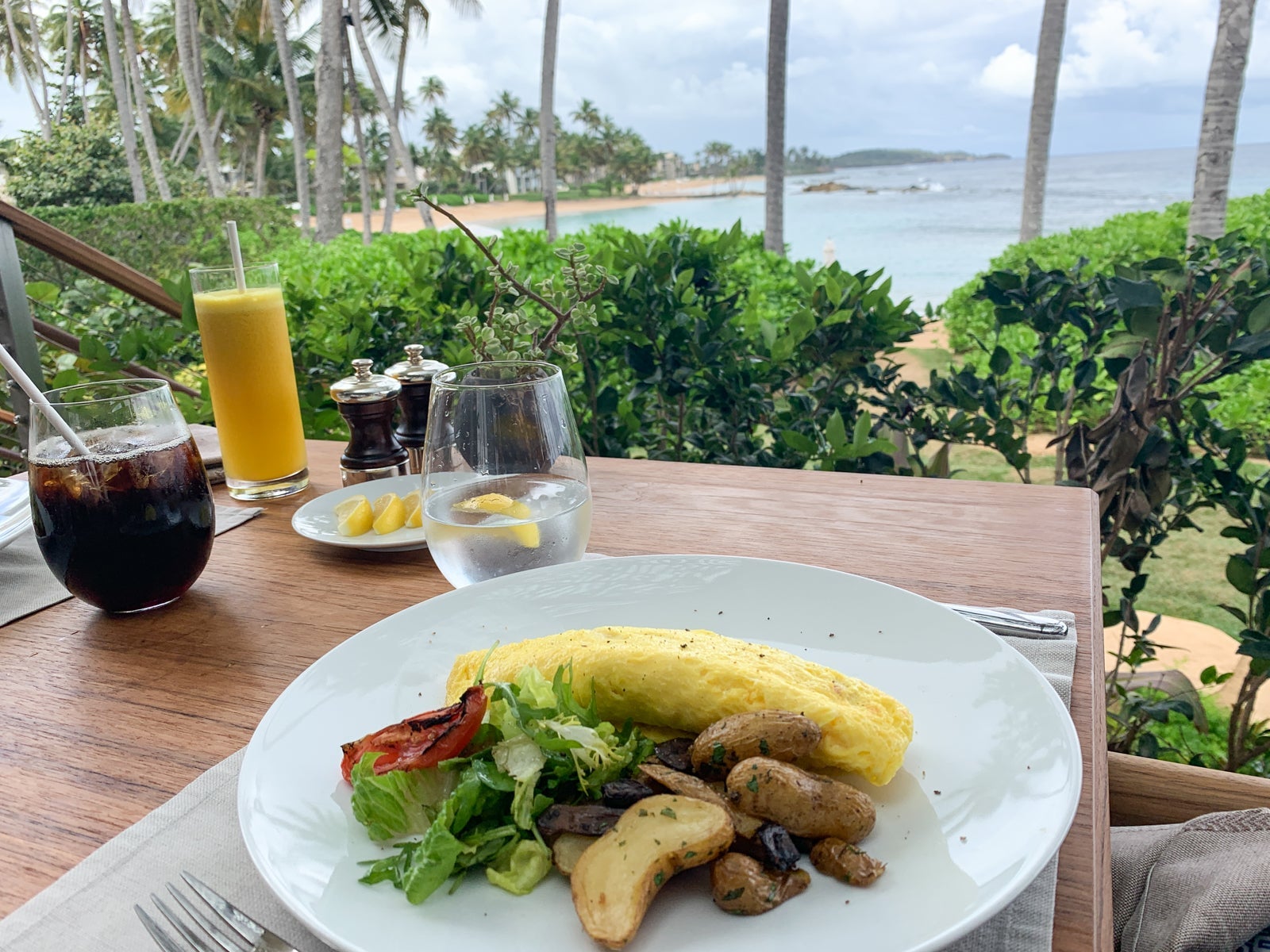 I ordered room service -- another omelet with local Puerto Rican sausage -- on the morning of checkout, and it was delivered within three minutes of the estimated delivery time -- I was impressed. The food arrived hot and fresh, too.