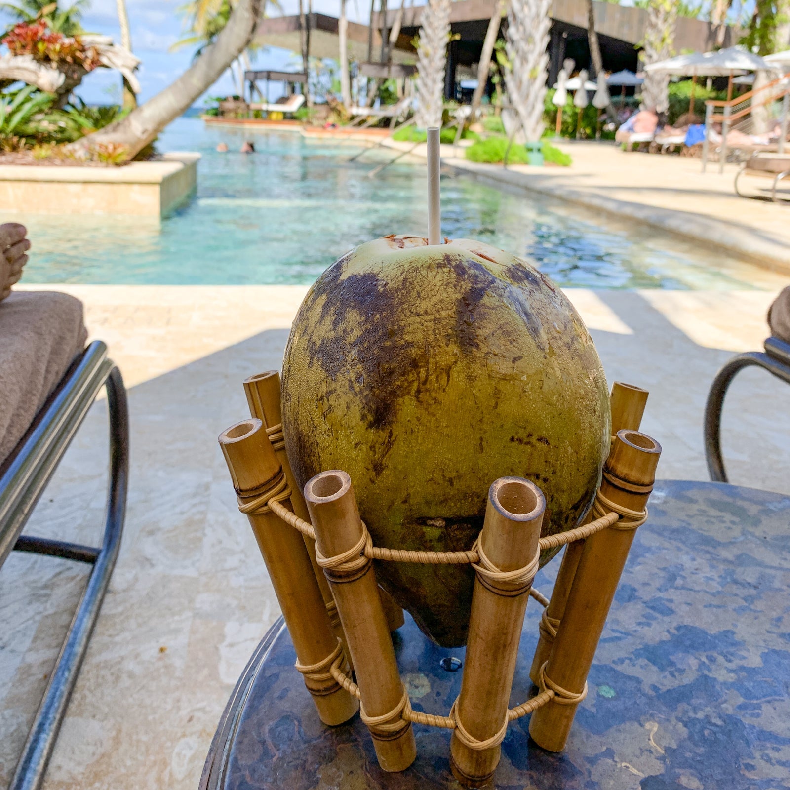 Pool service was attentive and friendly, and each day the staff wheeled around a cart with coconuts ready for drinking -- it was a refreshingly tropical touch.
