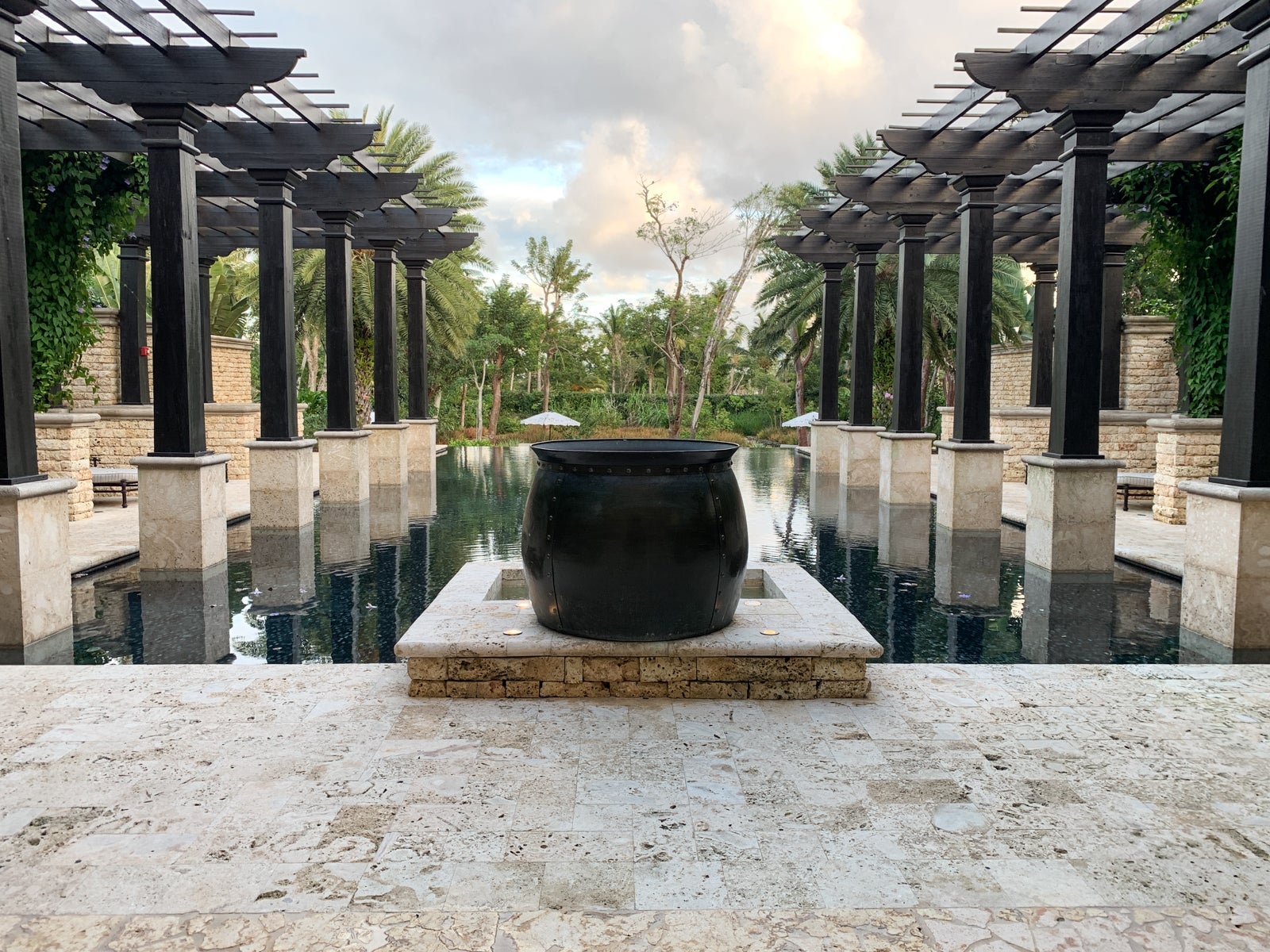 Inside, the building was perfumed by fragrant incense, and then through the other end of the building was the spa's reflecting pool, which had a number of loungers spread around it.