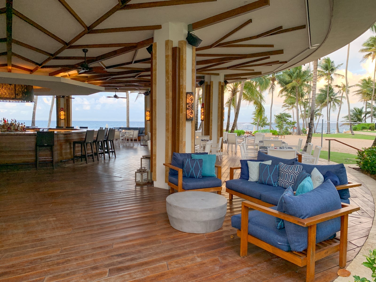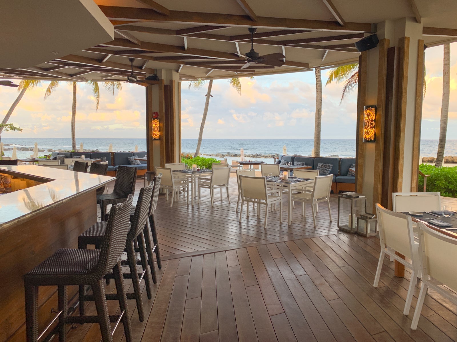 That night, we ventured to the resort's other beachfront full-service option, Encanto Beach Club Bar and Grill. The restaurant was set just steps from the beach and featured a large, circular bar in the center surrounded by tables and booths for larger groups.