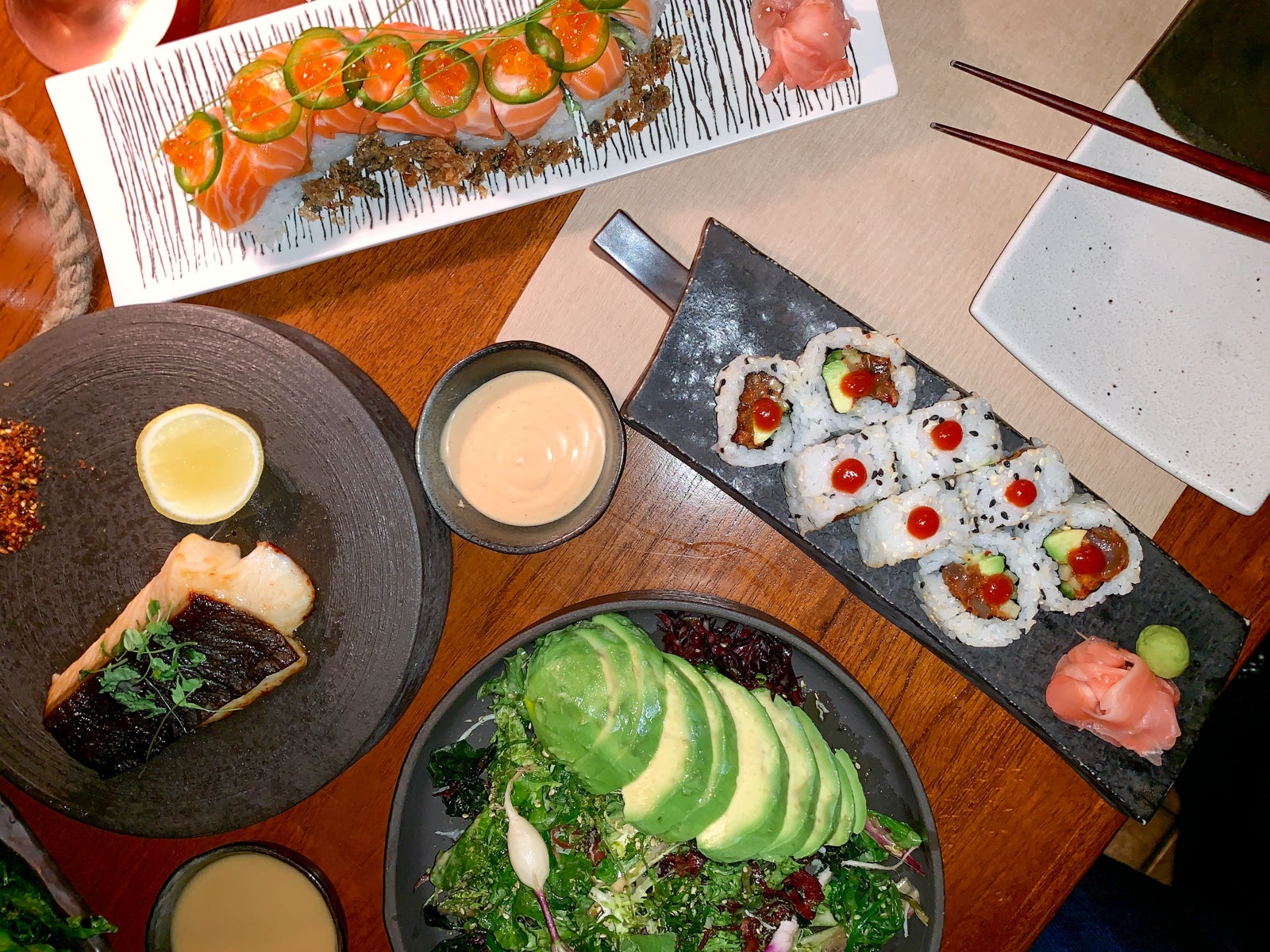 On the last night of our stay, we went back to Positivo Sand Bar for dinner -- whereas at lunch the restaurant served light poolside fare, at dinner time it focused on sushi and Japanese cuisine. We arrived around 7:30pm and asked for a table for two, which the restaurant couldn't accommodate, as they said the restaurant was fully booked. One look around, though, and I questioned the validity of that statement, as there were plenty of open tables. This happened at the Encanto Beach Club as well the previous night -- both times we ended up sitting at the bar. Totally fine for us, but make sure you make reservations in advance, or at least when you arrive on property, even though you probably don't even need them.