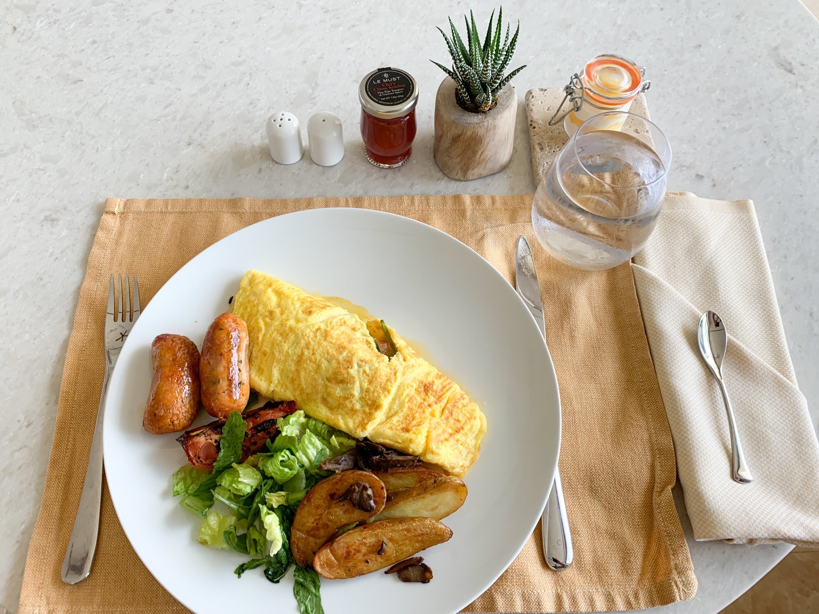 We both ordered from the a la carte menu -- Isabelle went with the oh-so-Australian avocado toast, while I went with a breakfast mainstay: an omelet.