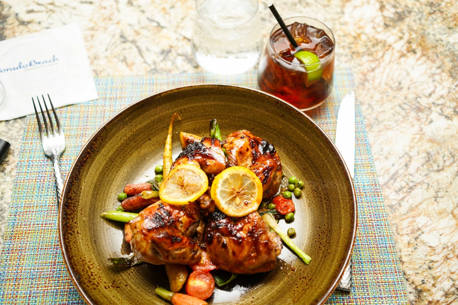 The menu focused on grilled meats and seafood. We shared a burrata-and-tomato appetizer, and I ordered grilled chicken with vegetables for my main course along with a Cuba Libre -- it was excellent. Many times, chicken dries out and becomes flavorless, but this dish was bursting with flavor.