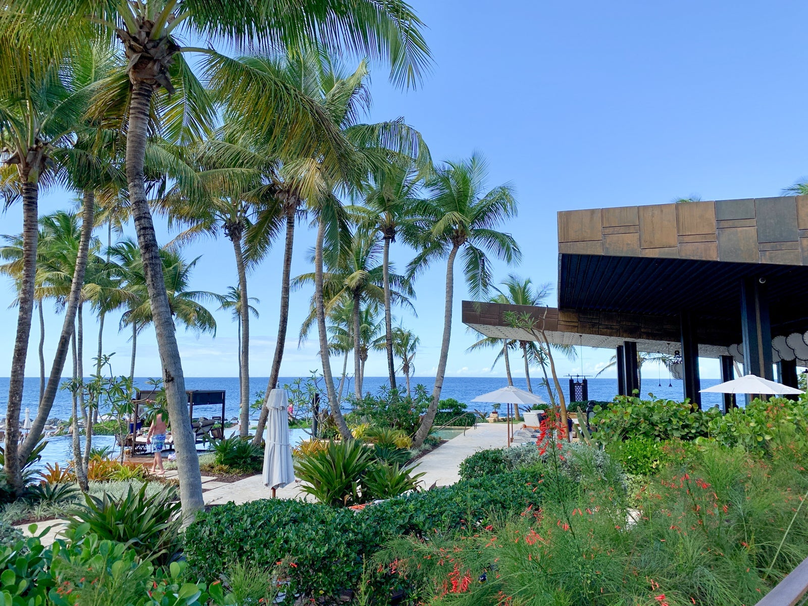 The first impression was great, but the second was even better. As soon as we ascended the steps to the main lobby, I was blown away by the view. The open-air lobby had a direct view through the heart of the resort out to the thundering ocean. I could already tell this place was going to be special.