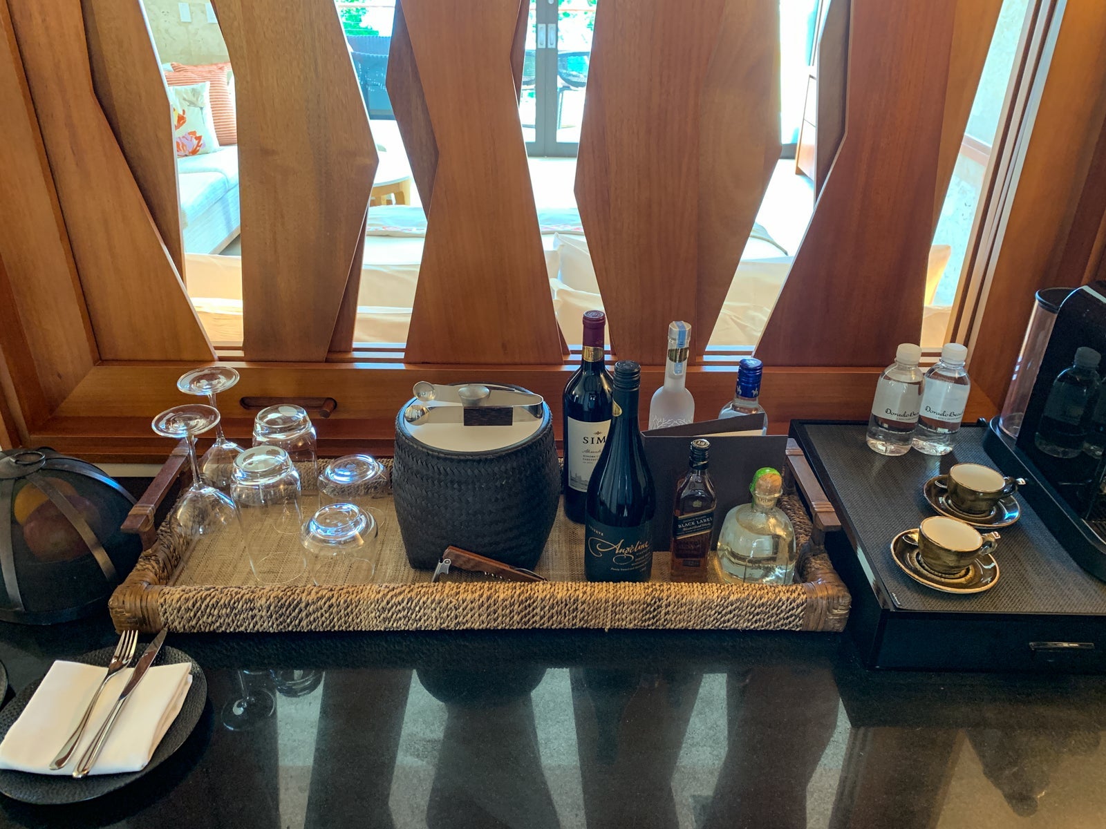 The minibar was expectedly high-end, with prices to match, though I did grab a Diet Coke one day -- desperate times. The provided water bottles were complimentary, though, and the housekeeping staff left several more each day.