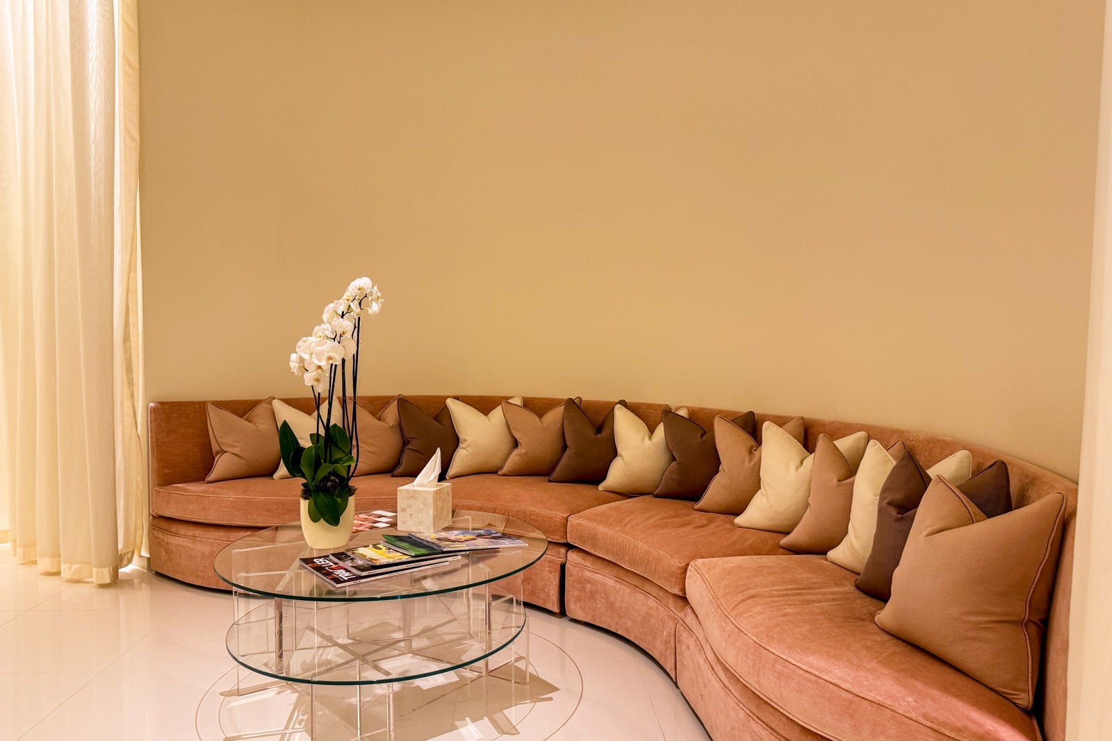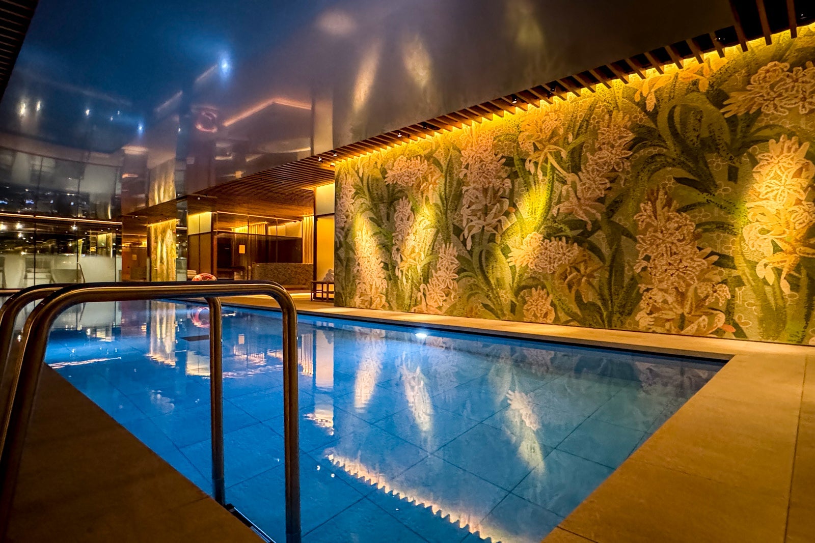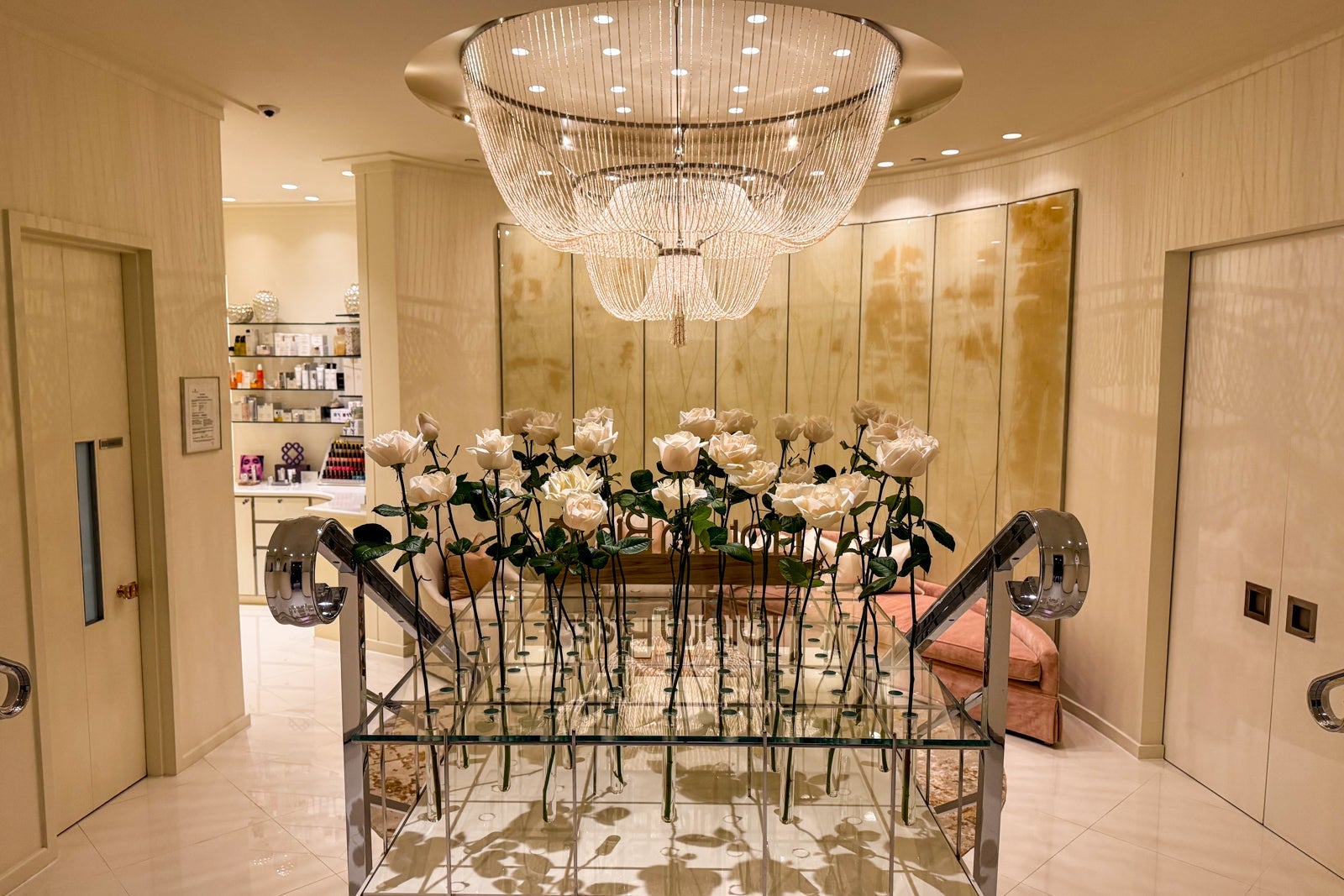Down one level from reception, the hotel's salon and nine-room spa feels like a tucked-away treat ready to pamper guests after a day out on the city's busy streets, with diaphanous white curtains and a minimalist arrangement of custom-grown, blush-colored Dorchester roses.