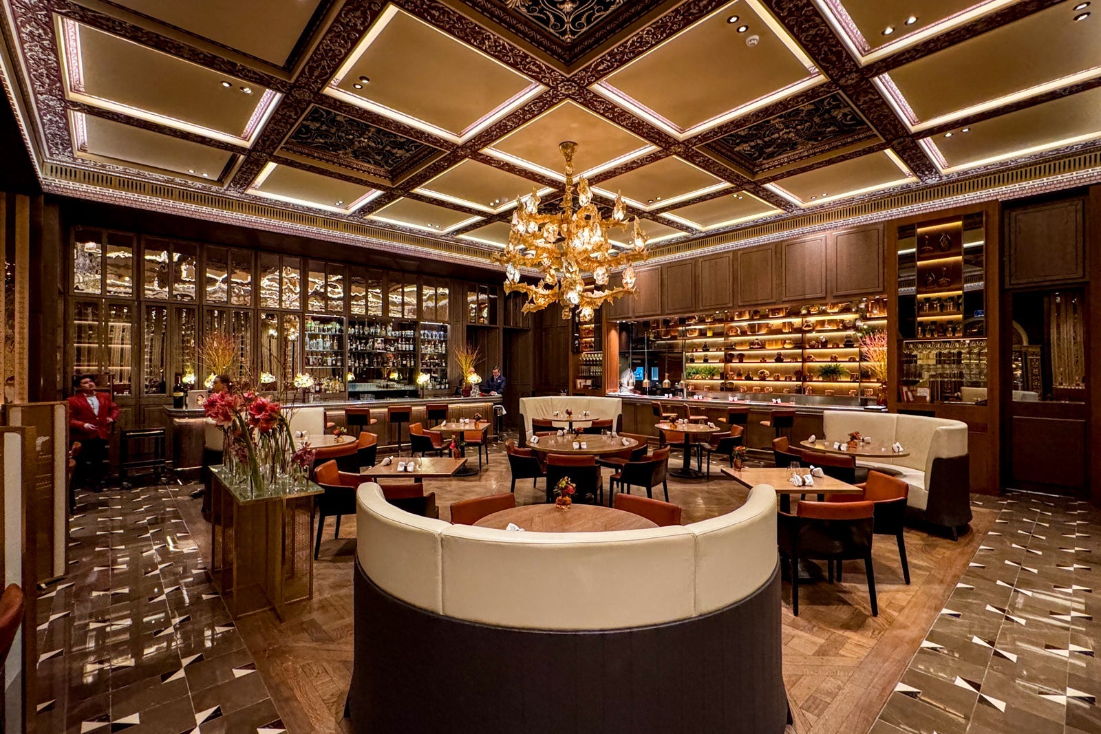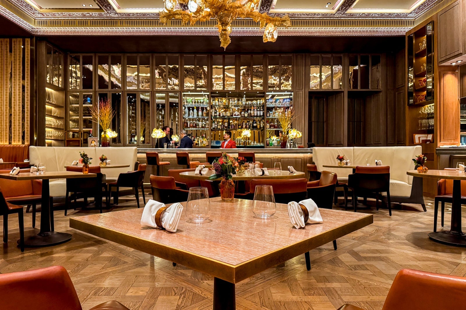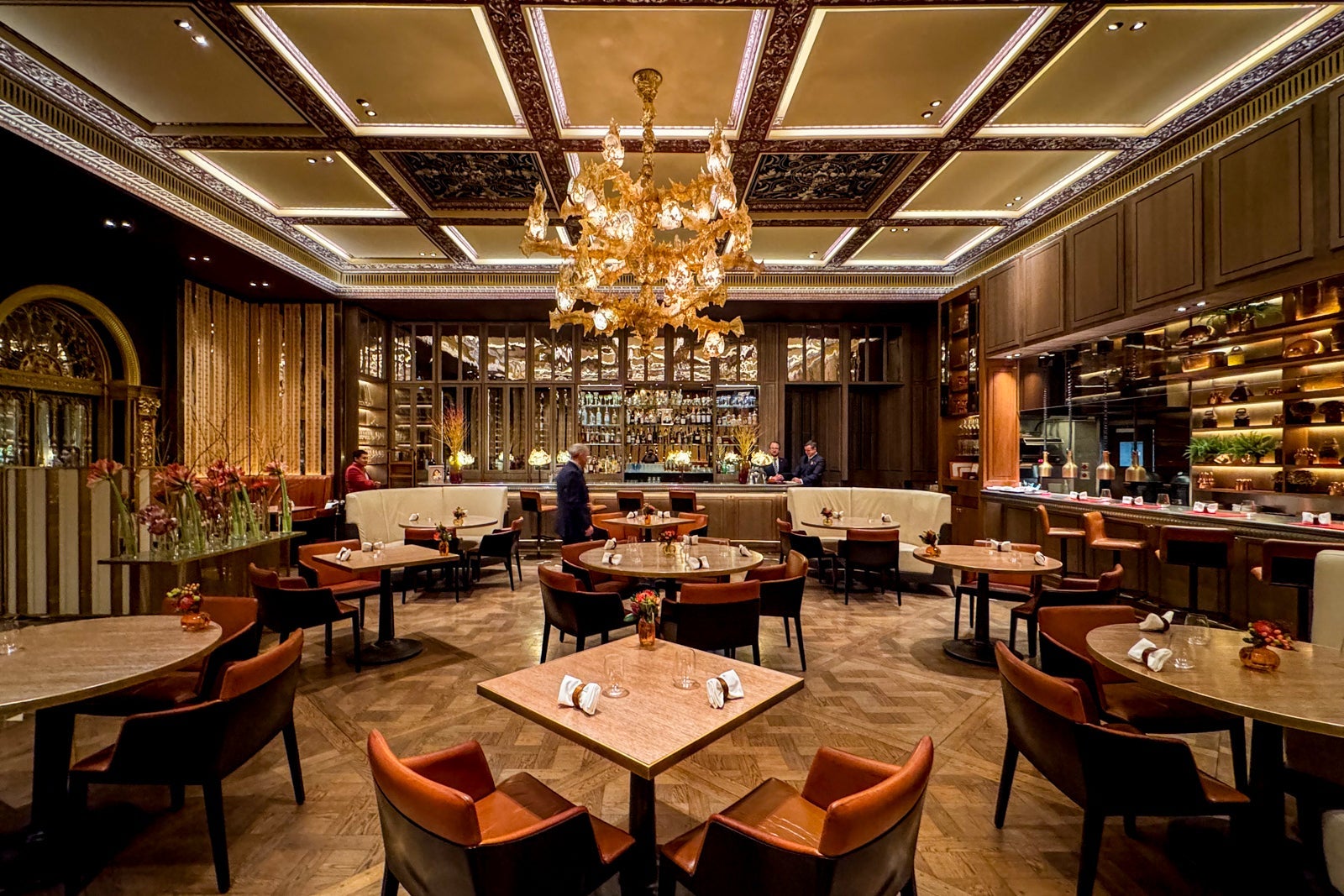 The hotel is home to an impressive slate of diverse dining options. Front and center is the all-day Promenade, which resembles nothing so much as a drawing room belonging to a heroine from an Anthony Trollope novel thanks to the profusion of flowers and daintily set tables, the antiquity-inspired crown molding and the gold leaf accents.