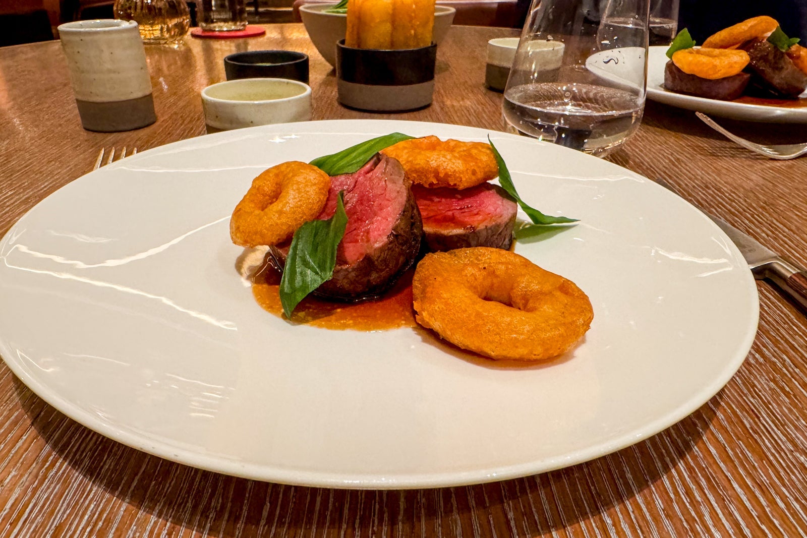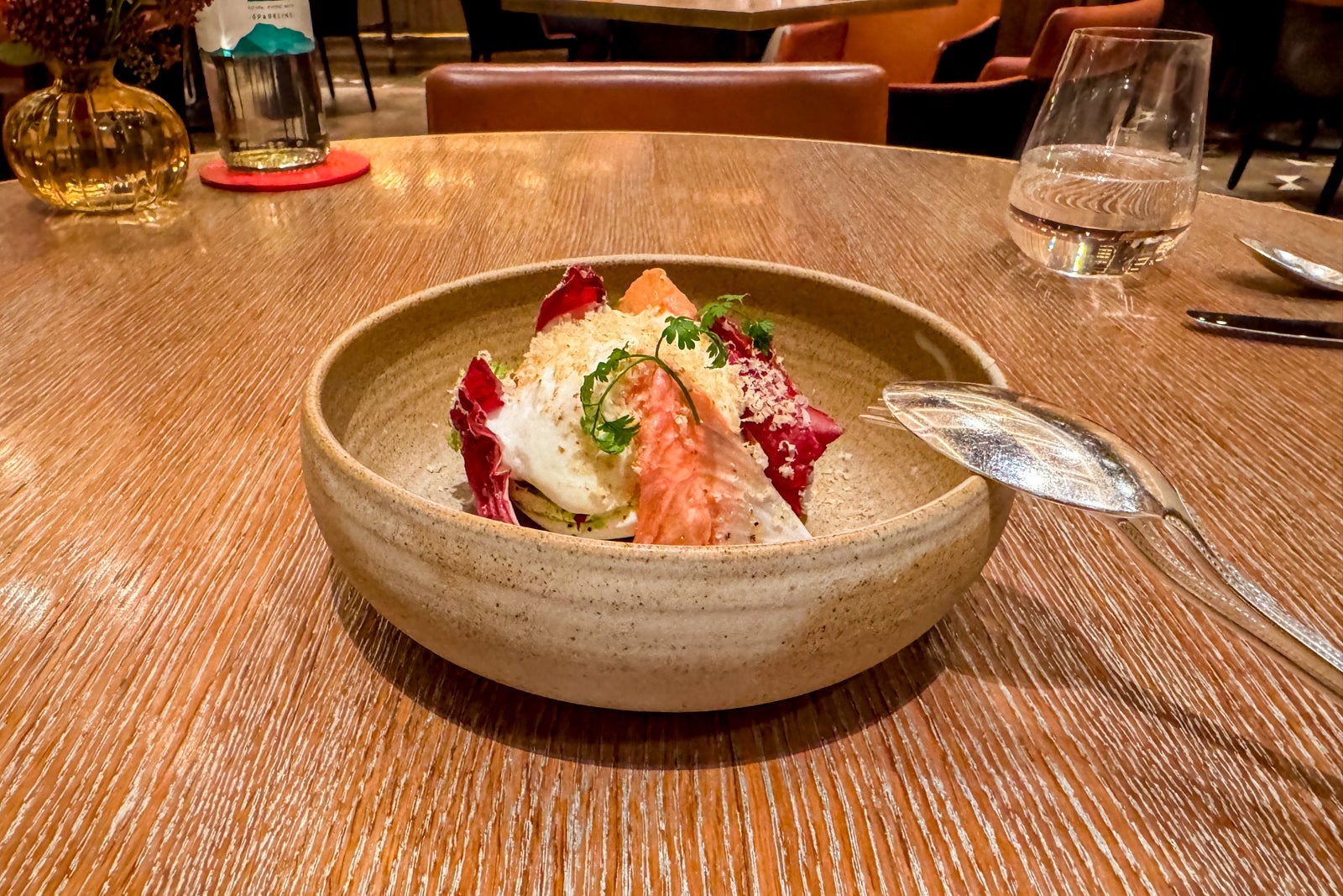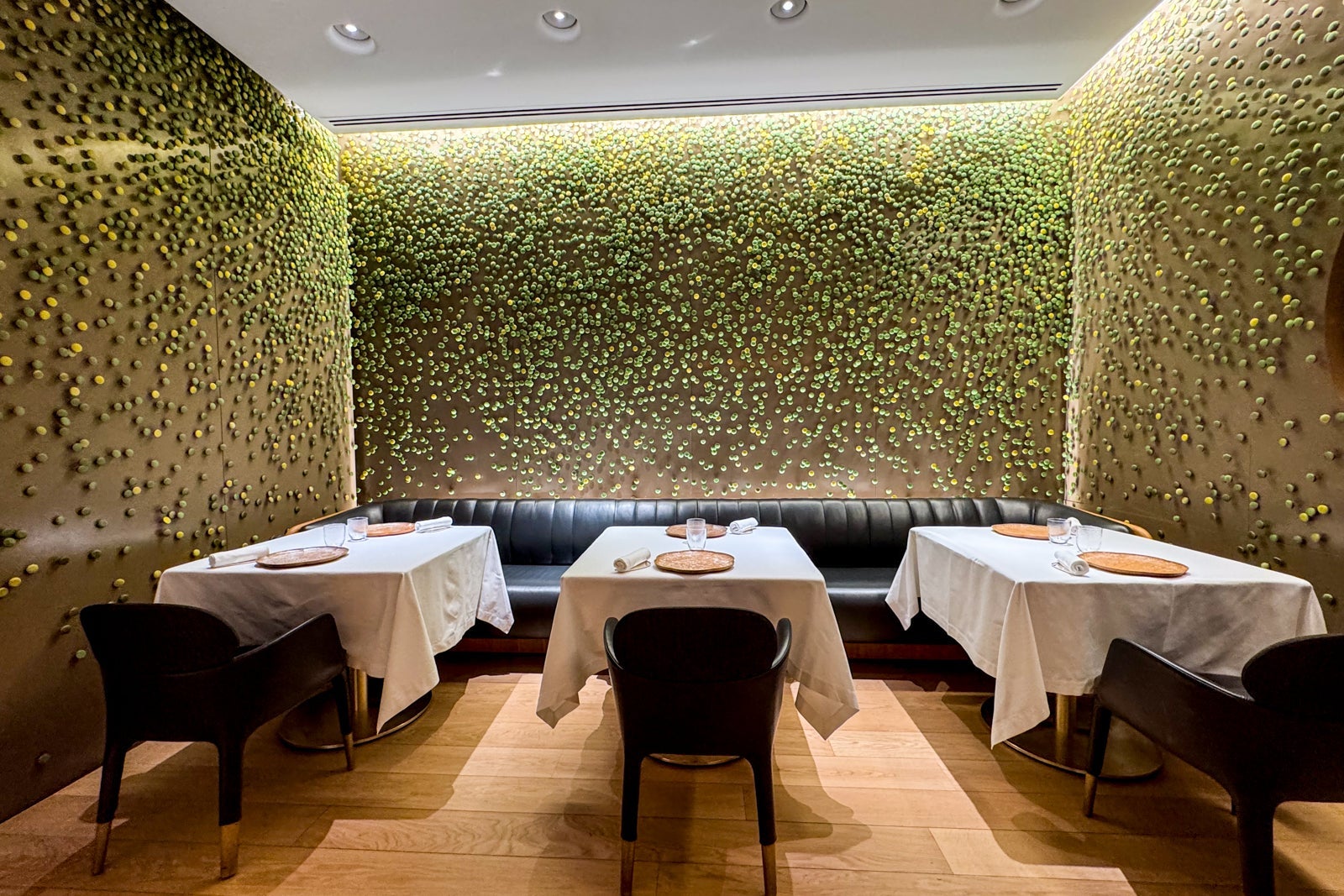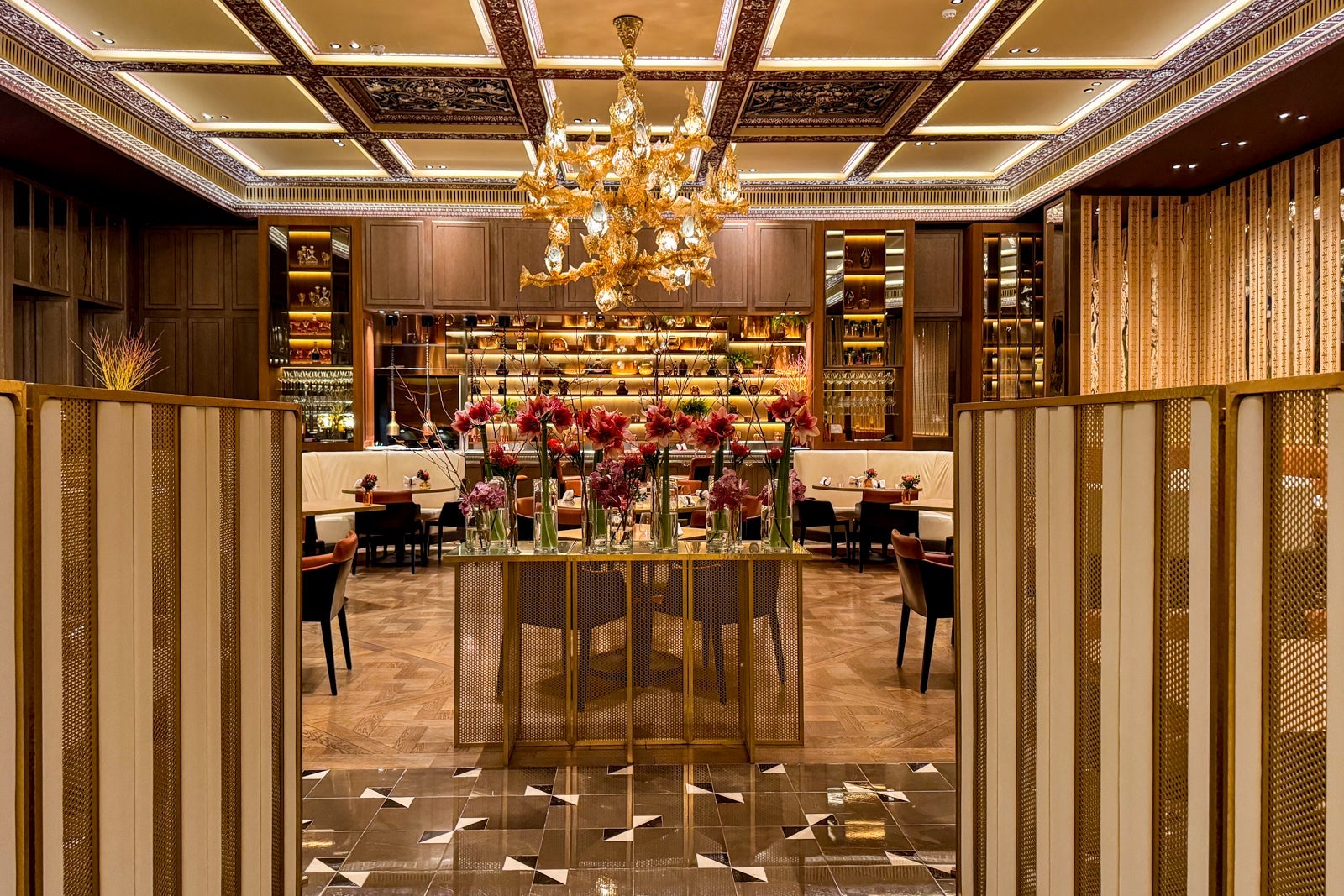 The hotel is home to an impressive slate of diverse dining options. Front and center is the all-day Promenade, which resembles nothing so much as a drawing room belonging to a heroine from an Anthony Trollope novel thanks to the profusion of flowers and daintily set tables, the antiquity-inspired crown molding and the gold leaf accents.