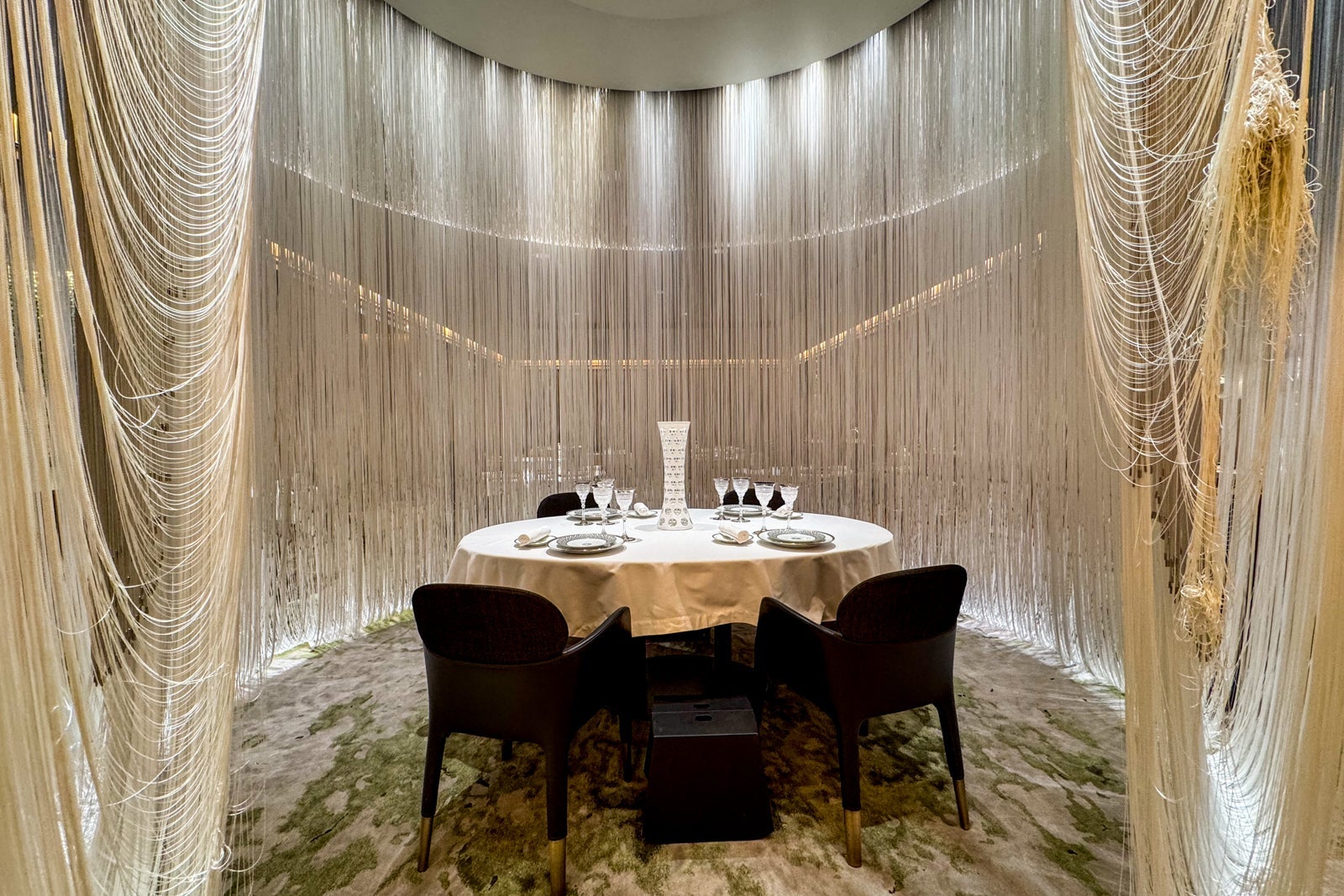 If you're there for a special occasion, see if you can reserve the Table Lumiere, a dining area shrouded with curtains of fiber-optic lights that makes you feel like you are dining among the stars. You can even choose your own china to dine upon.