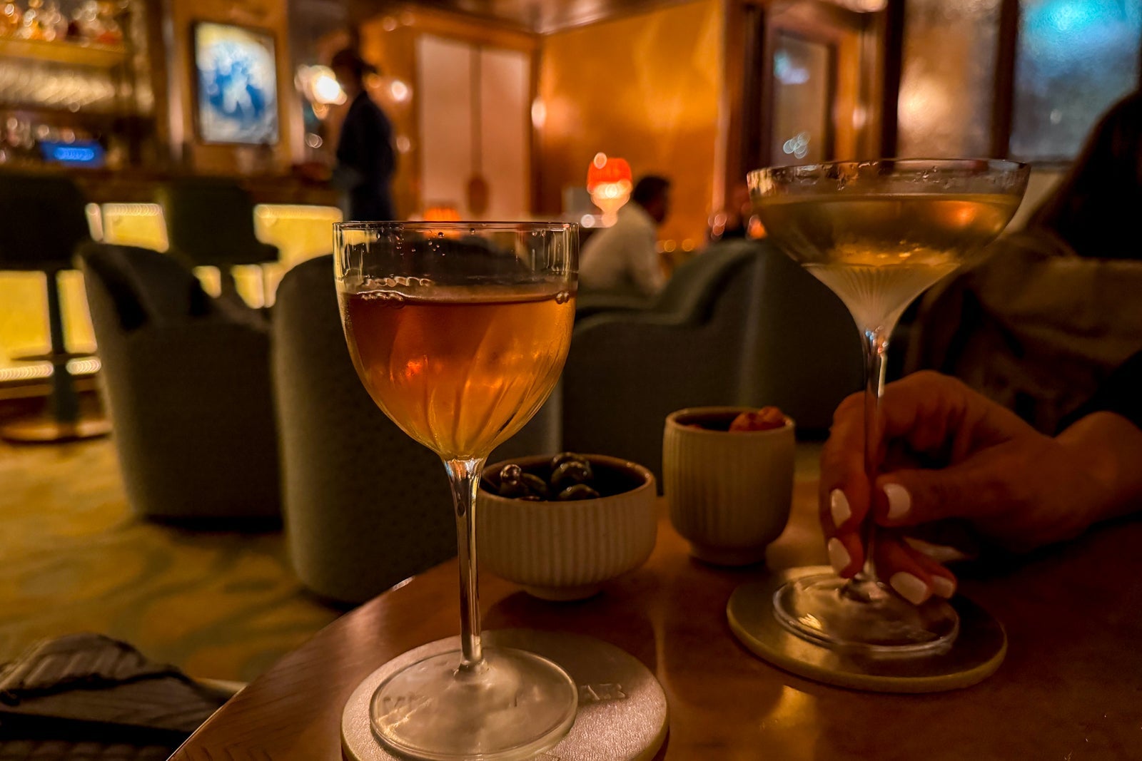 Of course, you must try the citrusy, 007-inspired Vesper martini with Stolichnaya Elit vodka, the Dorchester Old Tom gin, redistilled Forbidden Fruit liqueur, Del Duque sherry aged for an average of 30 years and Vesper scent ($33), but if you're in the mood for something a little stodgier, the Turning Pages ($33) is meant to evoke the feeling of leafing through an ancient tome in a hushed library, with heady drams of Jack Daniel's single-barrel whiskey, cognac, white port and paper syrup, all smoked and presented with a theatrical flair at your table.