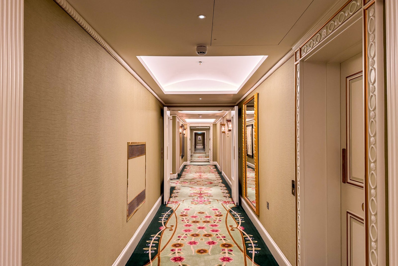 As part of the Rochon-directed revamp, the hotel's hallways and guest rooms have adopted palettes inspired by England's famous gardens, with dominant tones of daffodil yellow, pale mint green, heather blue and antique rose pink. The guest corridors, with custom-made Spanish Alarwool carpets replete with rococo flourishes and floral motifs resembling baroque tapestries, lean into the historical rather than the hip.