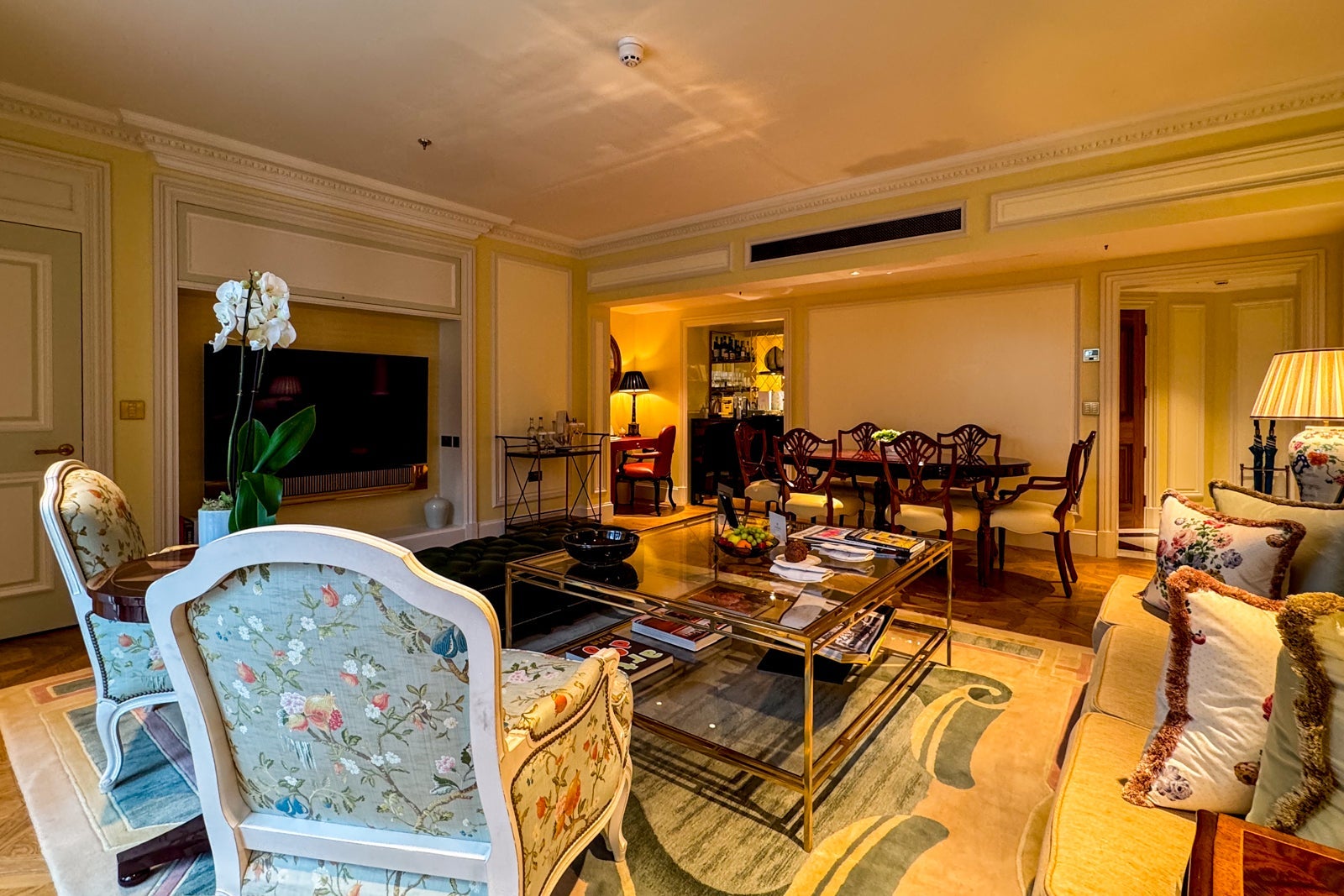 The Belgravia Suite felt like an opulent London pied-a-terre thanks to its generous footprint, gorgeous 18th-century-inspired textiles and panoply of luxurious touches like live orchids and ornate yet unfussy furnishings.