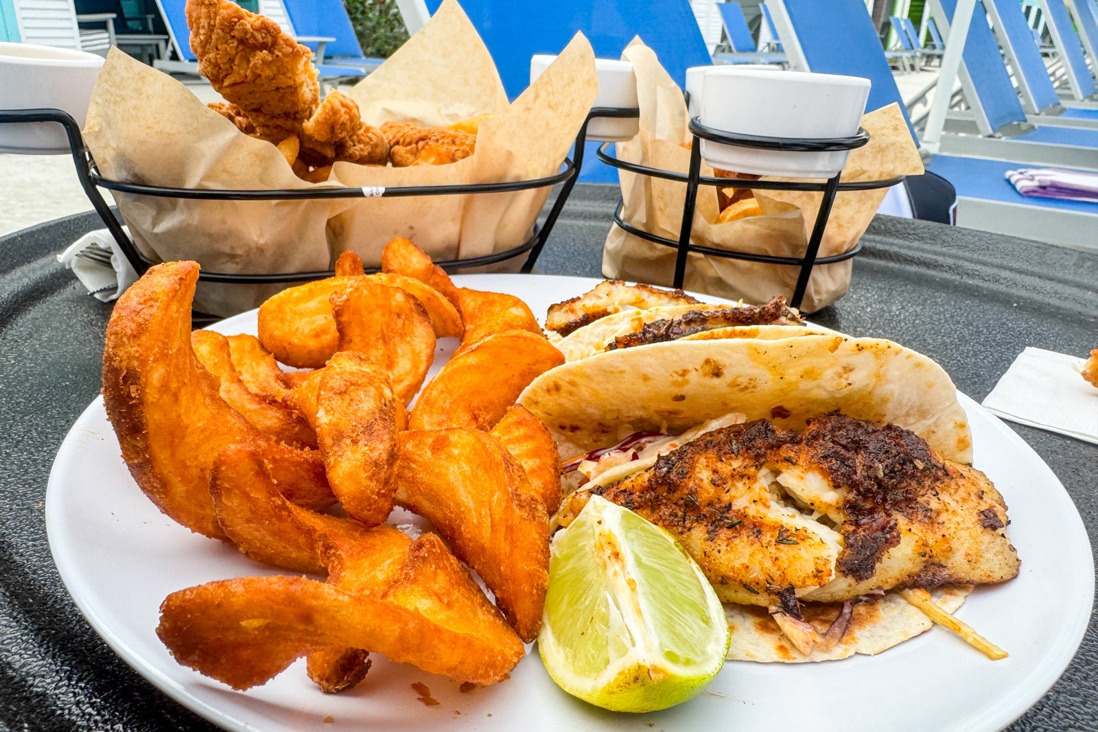 In addition to its convenient location near Disney, the hotel is also just down the road from the Promenade at Sunset Walk entertainment district. Here, you'll find several shopping and dining options, as well as live entertainment. We took the complimentary hotel shuttle to Sunset Walk for our dinner at The Wharf. In addition to the live band playing at dinner, there was a custom car show taking place at the outdoor promenade.