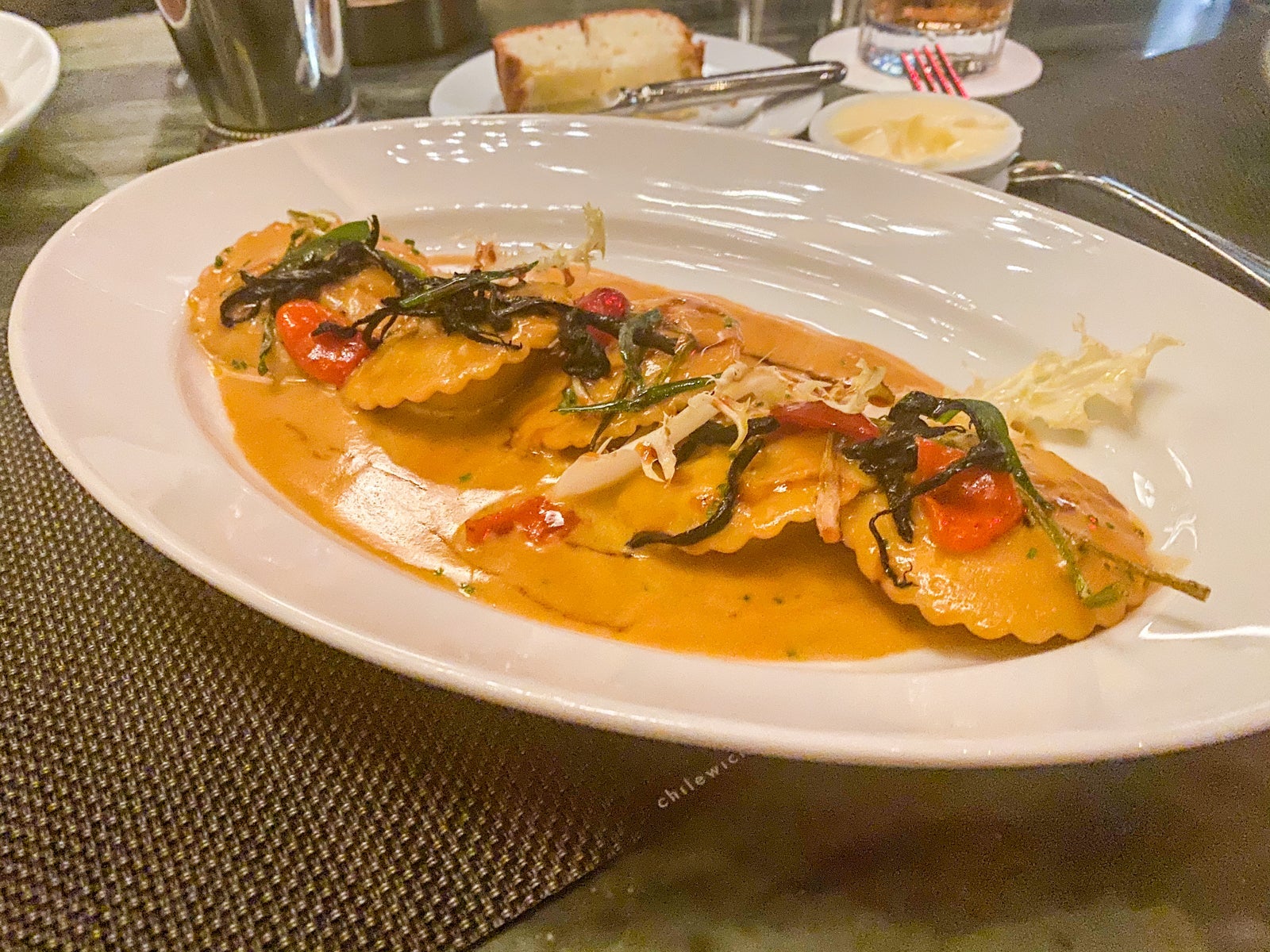 This is the kind of fare you're probably going to be craving after six workout classes and a puncture wound. At least, I know I was. Lobster ravioli and a steaming bowl of minestrone with San Marzano tomatoes and pole beans was just the ticket.