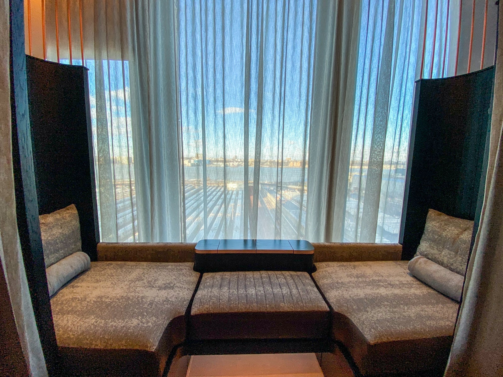 Rooms at the Equinox Hotel are basically sleep temples, with serious soundproofing (including padded walls and upholstered leather headboards) that effectively blocked out the cacophony from the construction sites and train yards below.