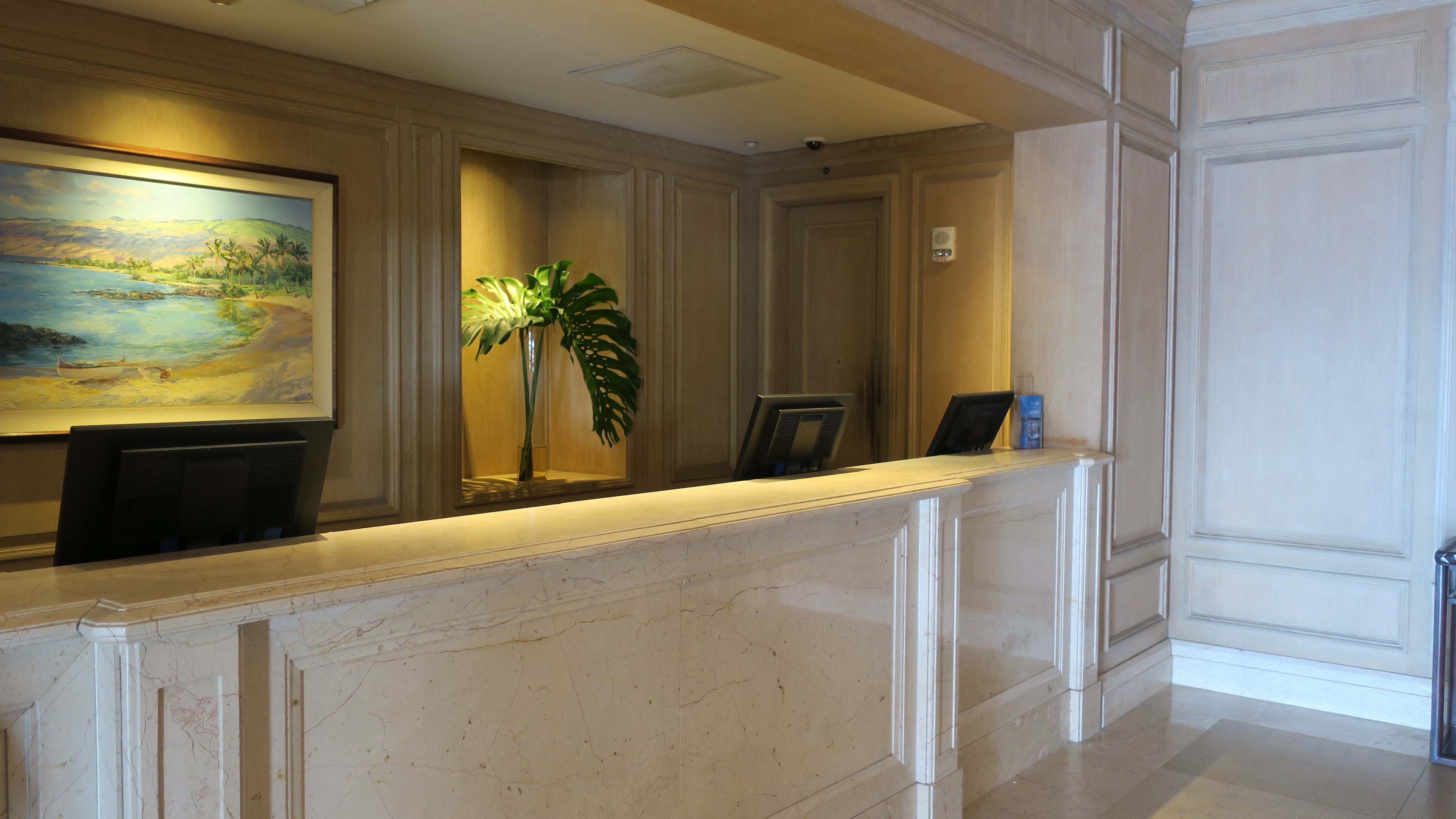 We were greeted on arrival with beaded necklaces that made for a great souvenir! The check-in area was open-air with a clear sight line to the pool and ocean. There was also a full check-in counter just for Japanese guests. The bellhop gave us excellent information for activities both on and off the premises and was attuned to our needs. We asked for a dental kit (coming off our long flight), and the kit arrived in less than five minutes.