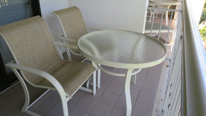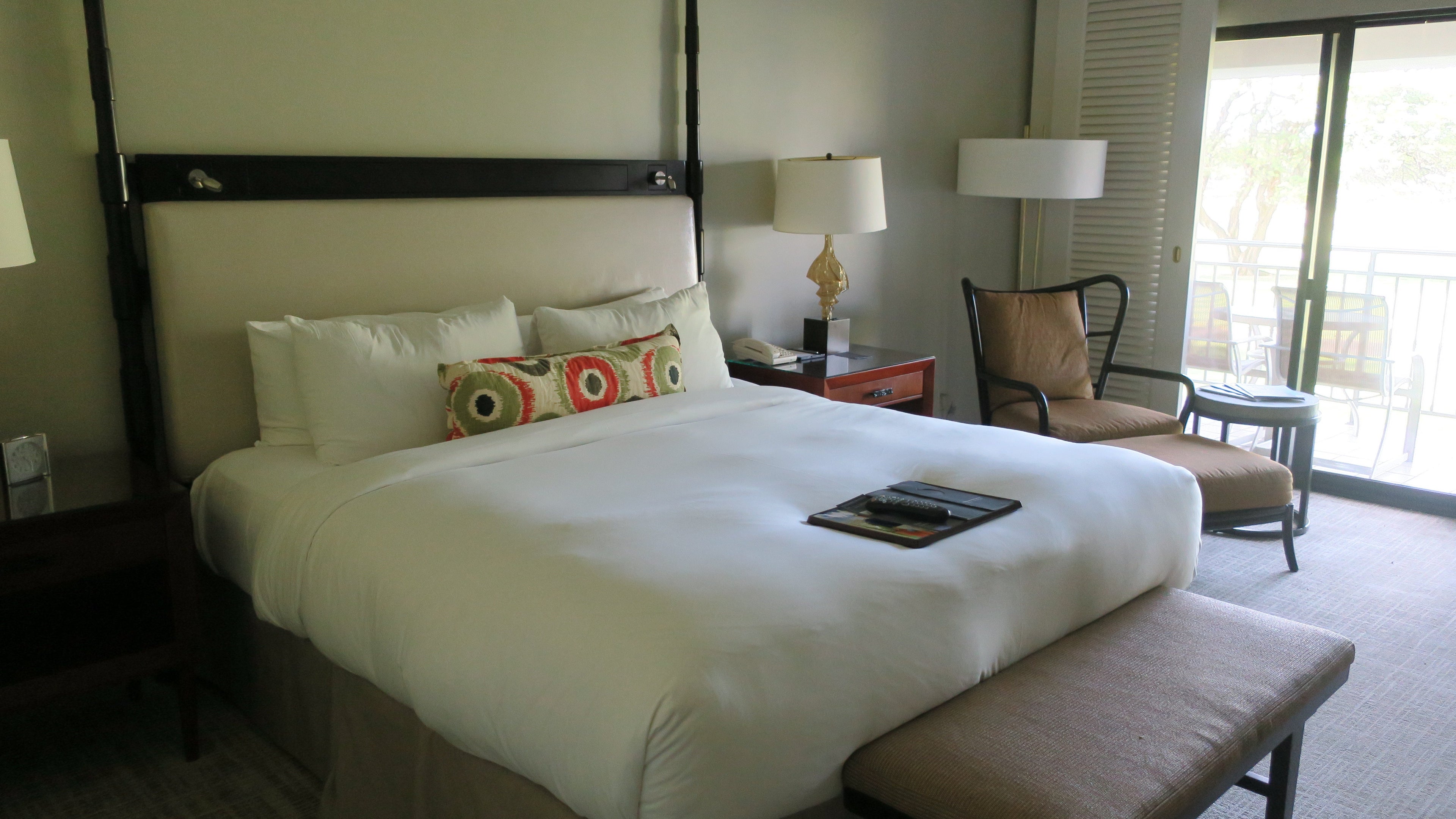 The low light of the room was the lanai, an outdated alcove that seemingly didn't make the extensive renovation. There was a lounge chair, two sitting chairs and a small table atop the worn tile, but the furniture was more reminiscent of my grandmother's patio than a four-star resort.