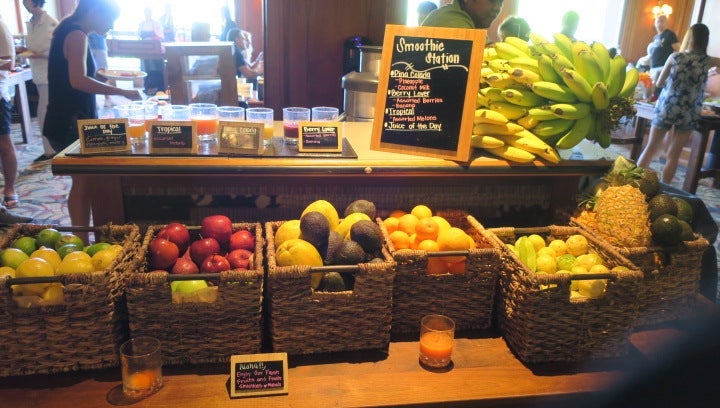 We also tried the breakfast at Orchid Court, which featured a la carte options as well as standard buffet fare. The buffet included an omelet bar, pastry options, locally sourced fruit and several hot dishes, but the standout was the build-you-own smoothie bar. There was a wait at peak hours, but if you go, try to snag a table on the lanai, as the garden views far surpassed the more corporate ballroom-like appearance of the inside seating area.
