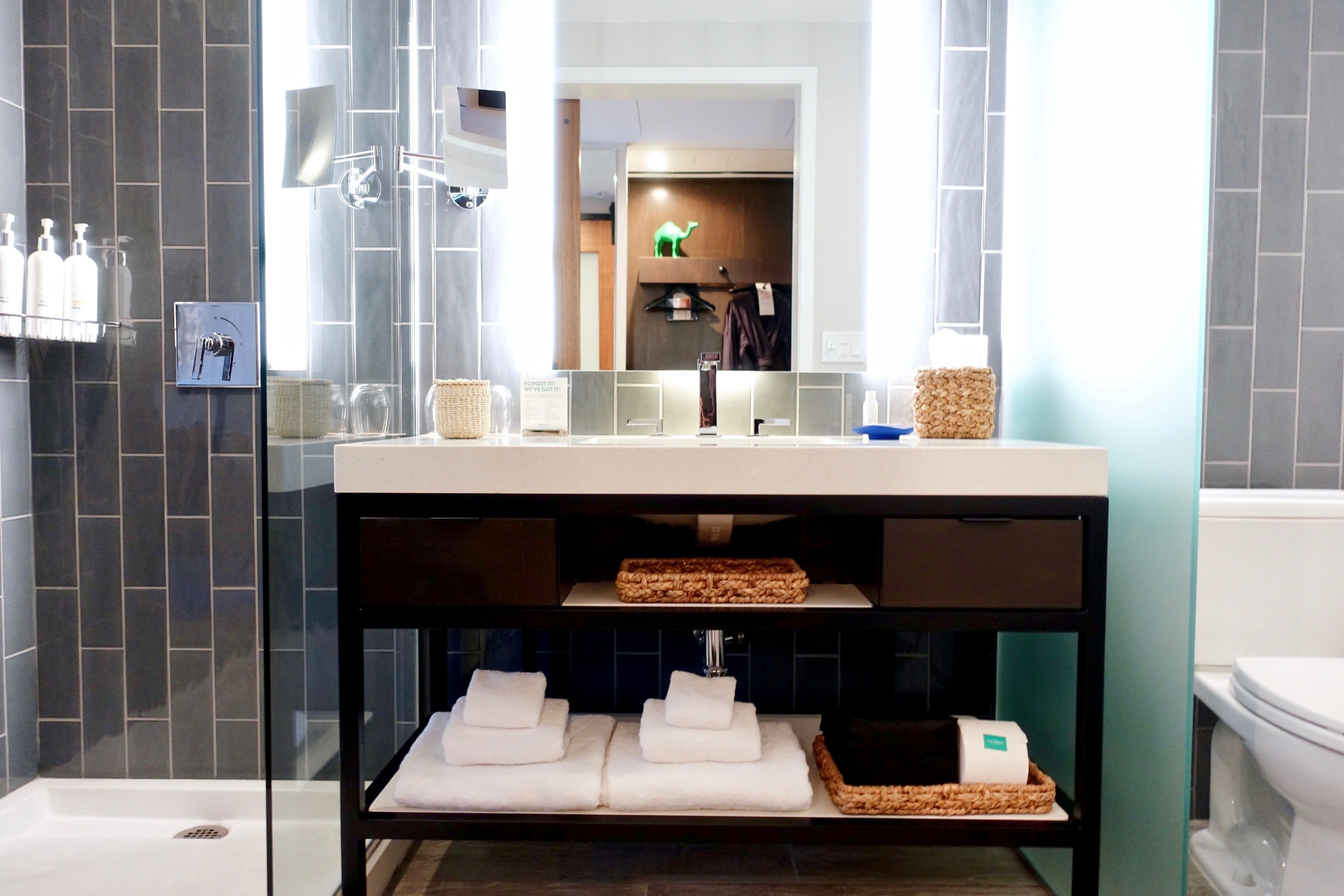 Toiletries were in large, refillable bottles, and were from Atelier Bloem, Kimpton's exclusive bath-and-body line by Malin + Goetz. As is standard with Kimpton hotels, a wide selection of complimentary travel amenities also were readily available.