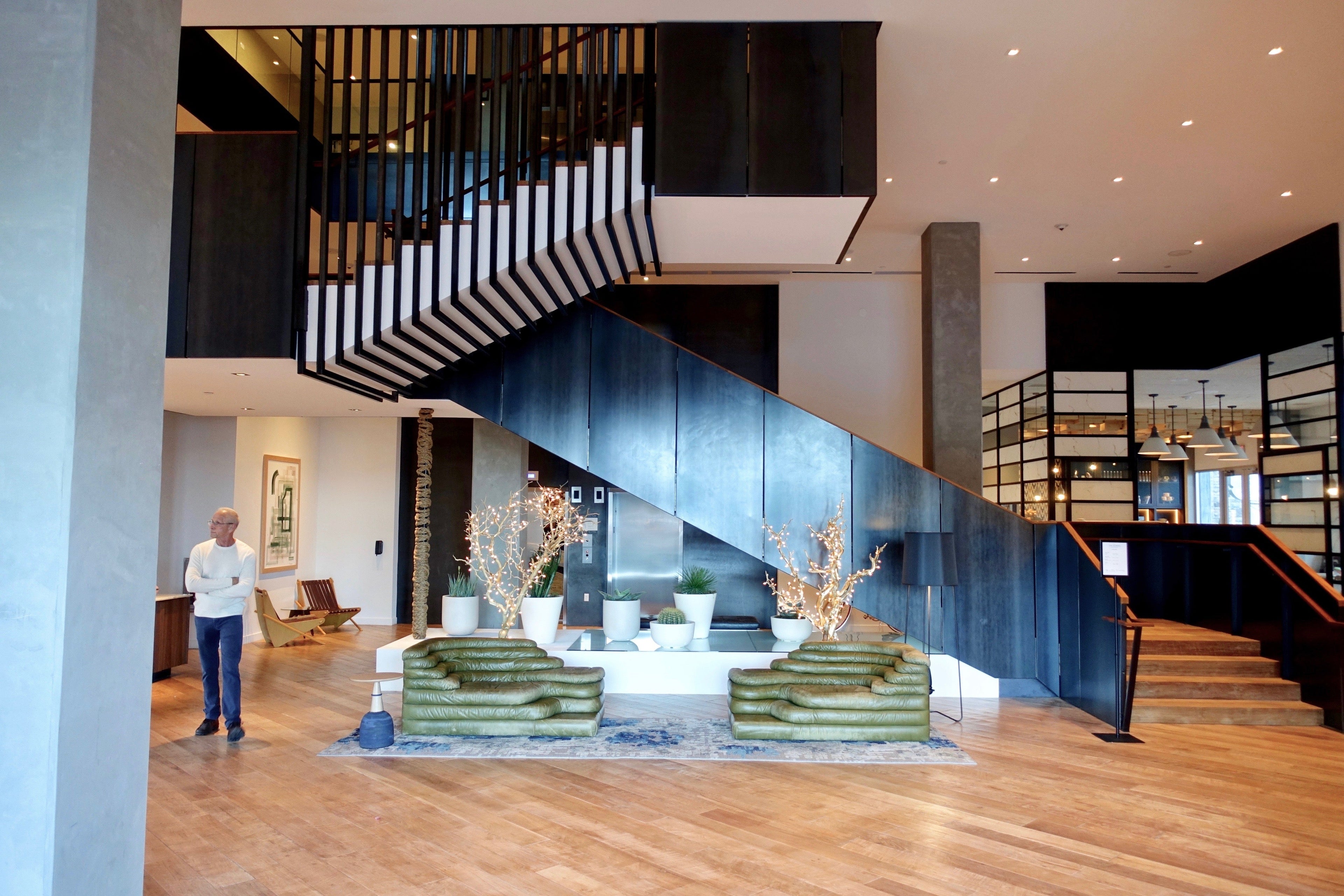 That being said, the interior was where the hotel really shone. Upon walking in the front door, I was immediately struck by the lobby's high ceiling and sleek design.