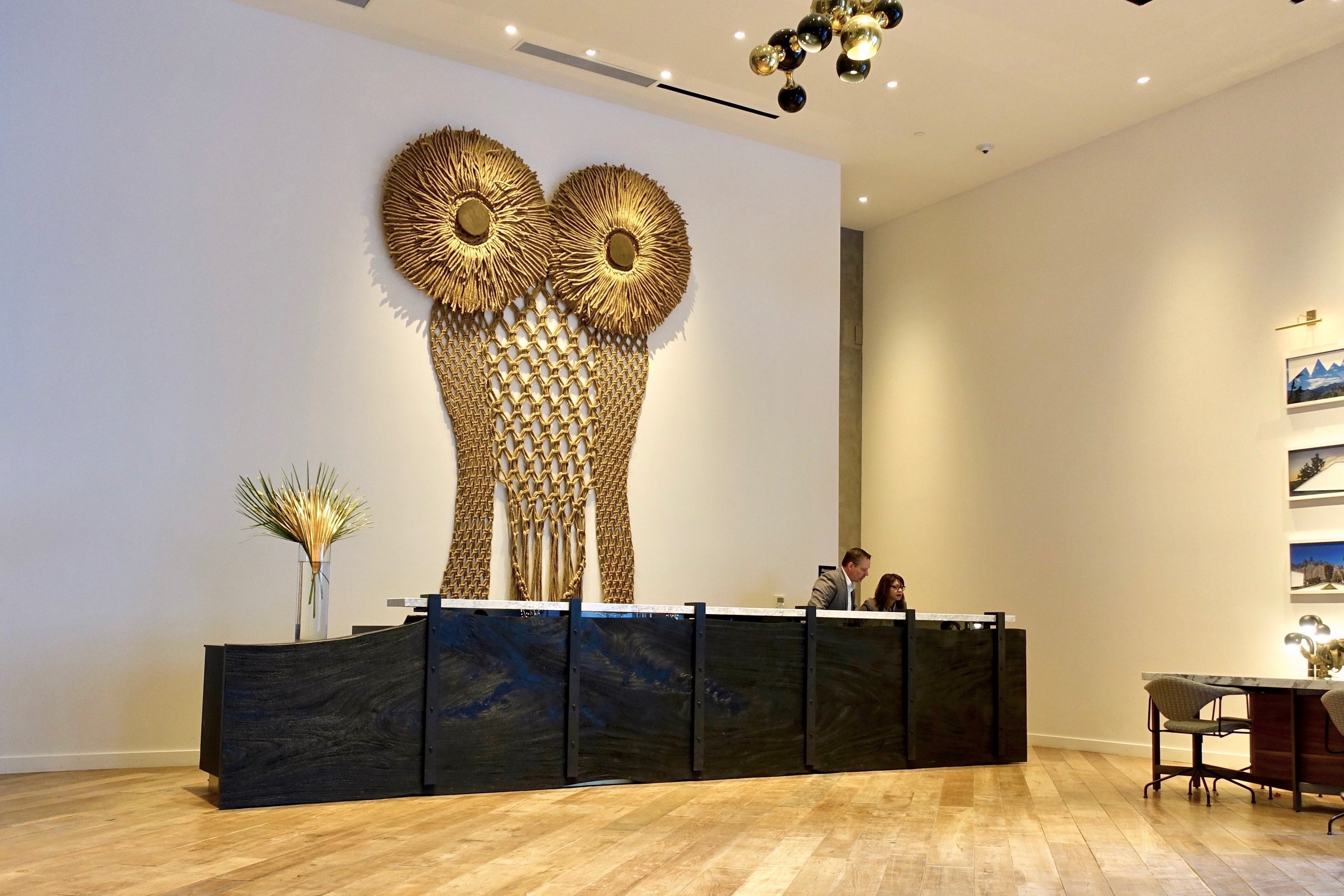 Behind the reception desk was a 16-foot tall macramé owl — another way the hotel paid homage to Palm Springs' mid-century heritage.