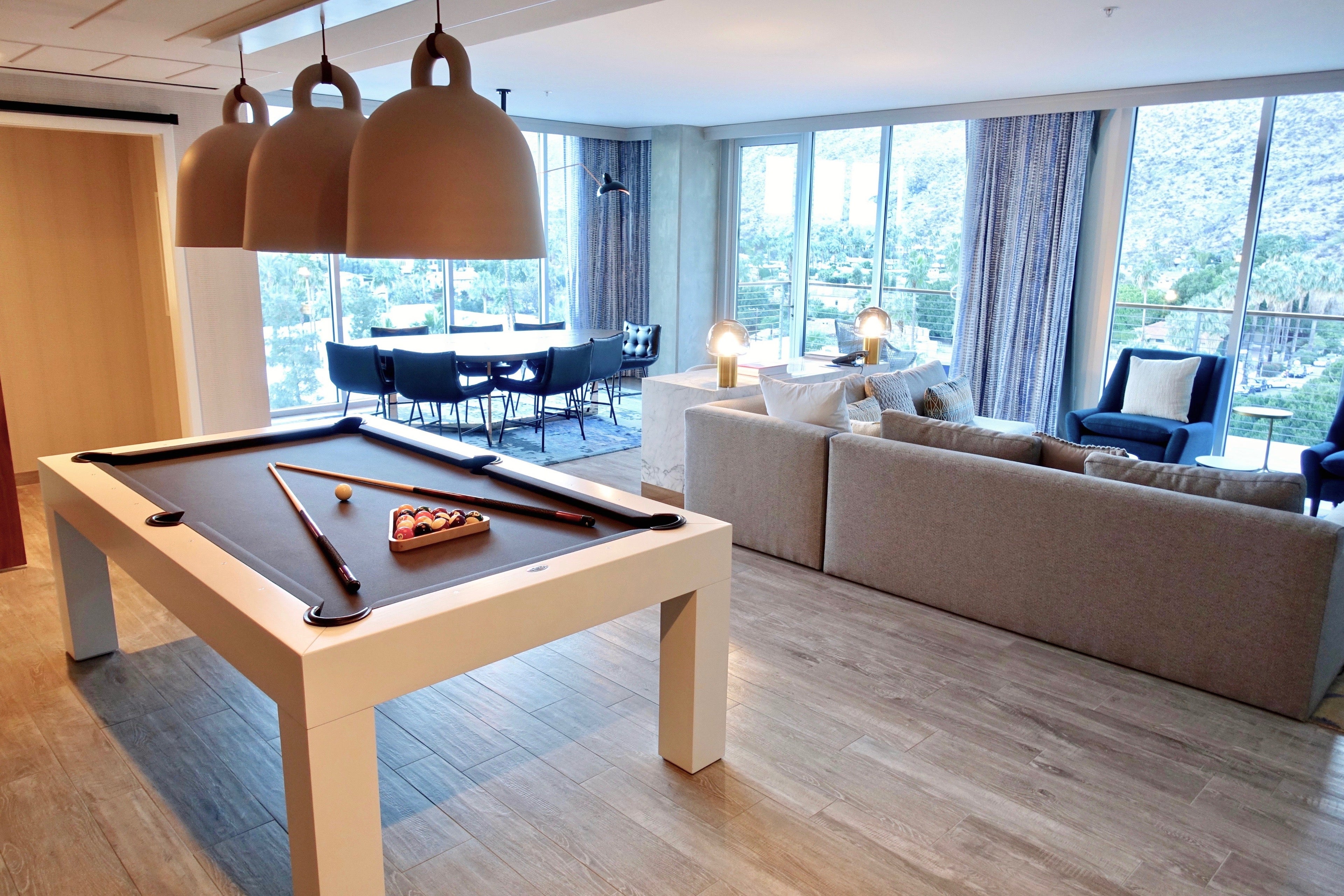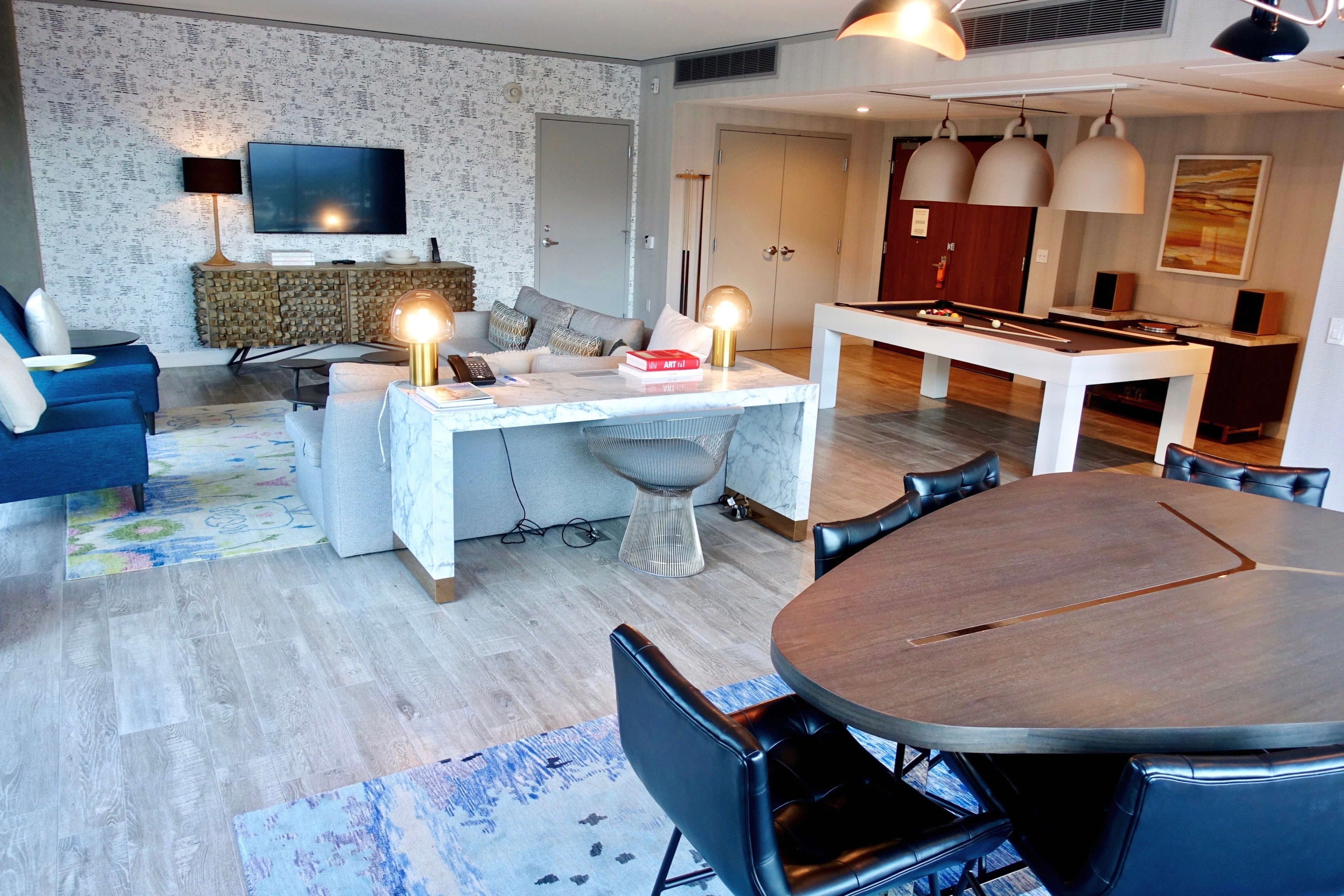 The 1,500-square-foot suite was complete with amenities such as a pool table, record player with vintage vinyl, a pull-out sofa and dining table. There was plenty of space for entertaining.