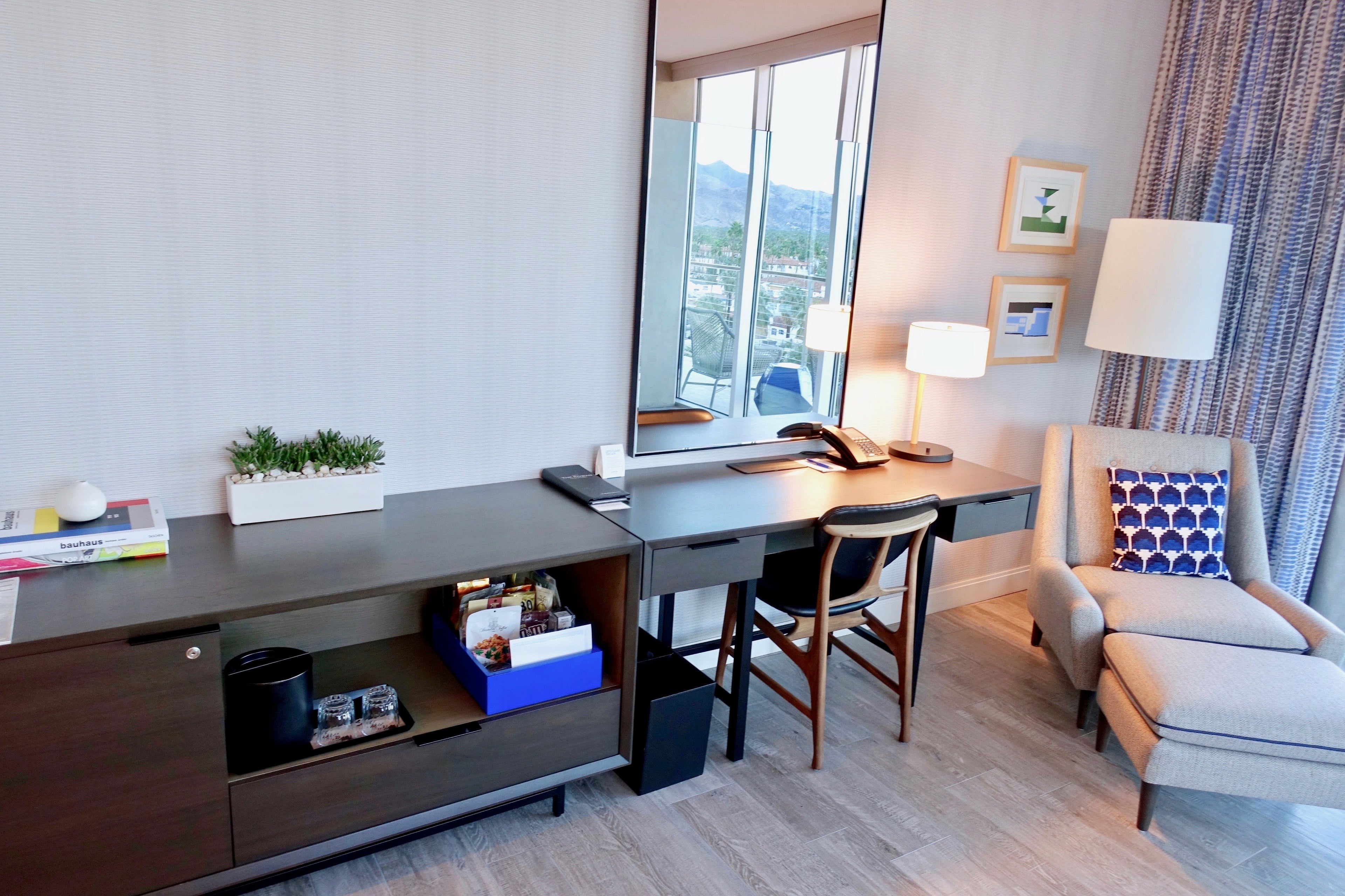 As you'd expect from a Kimpton property, the main lobby was stylishly furnished, and there was plenty of locally inspired décor, but with a contemporary slant. A two-story window illuminated the lobby with plenty of natural light and provided a picturesque view of the San Jacinto Mountains.
