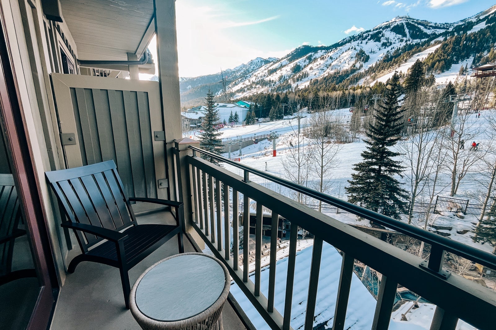 Guest rooms start at a spacious 500 square feet for a resort room. We stayed in a mountainside room with two double beds with an amazing view of Rendezvous Mountain and ski lifts. Stepping out on the balcony, you could watch the skiers zipping by and the Bridger Gondola and Aerial Tram going up and down the mountain.