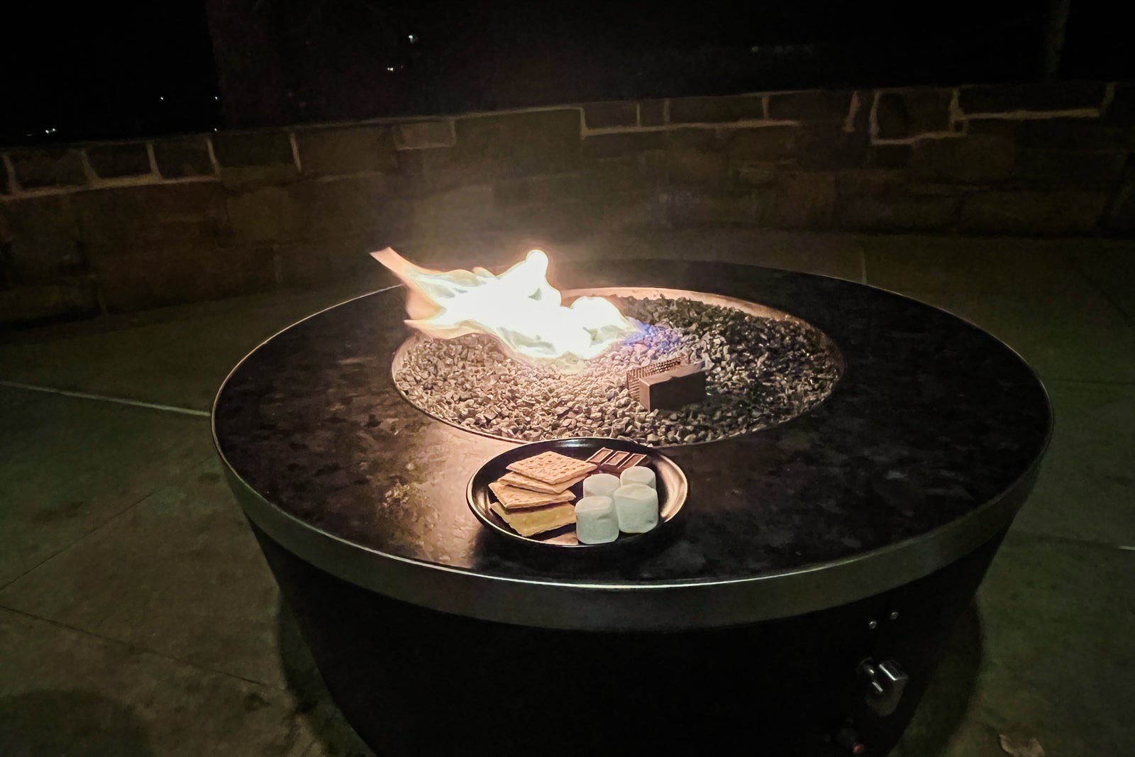 The outdoor patio of the lounge has fire pits that are made for enjoying a sweet treat: after-dinner s'mores, which are complimentary from the bar.