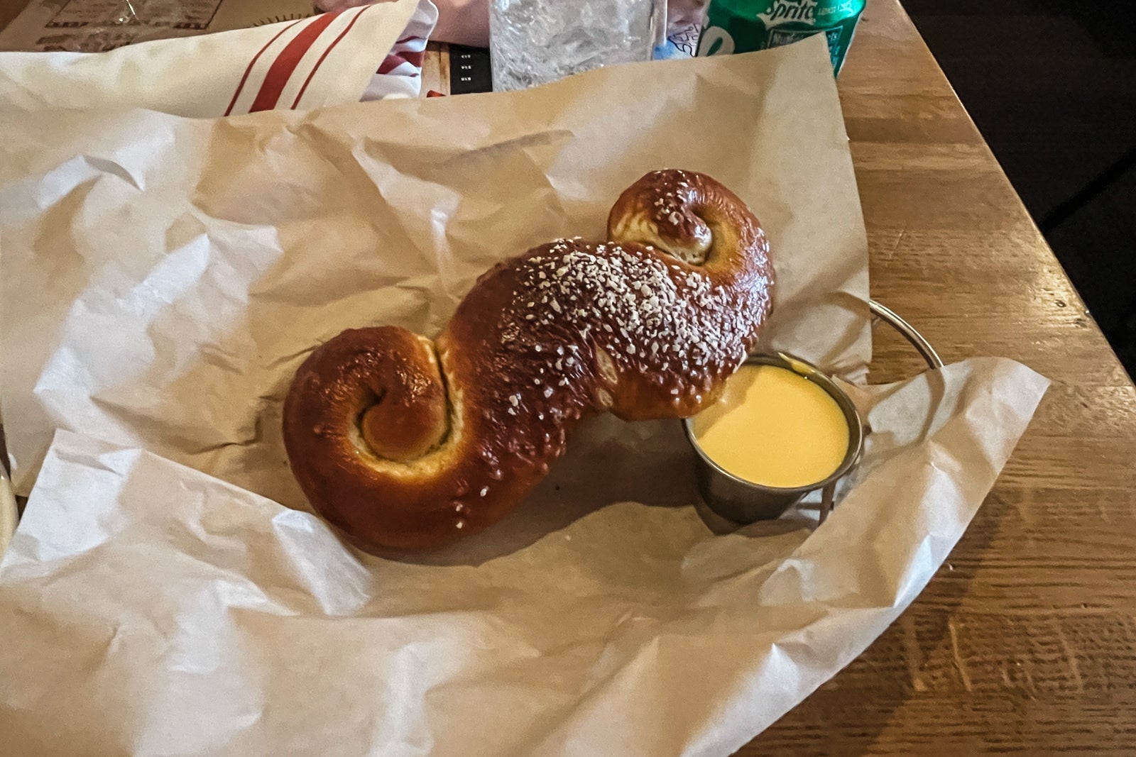 Don't miss the chance to order a house-made warm pretzel shaped like a handlebar mustache ($18). It's fun for kids and adults.