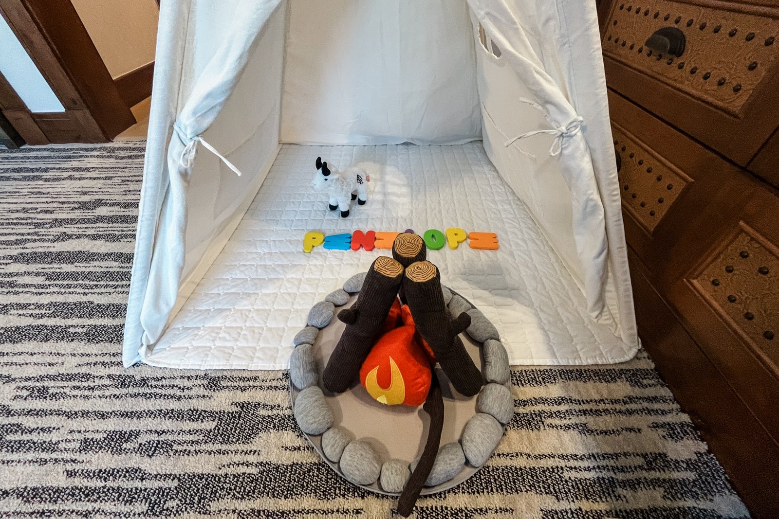 She was so excited to have her own tent that she asked to sleep there overnight. The next day, when we returned to the room, housekeeping had brought an extra pillow and blanket, and made up the tent for a restful slumber when they noticed she hadn't slept in the bed.