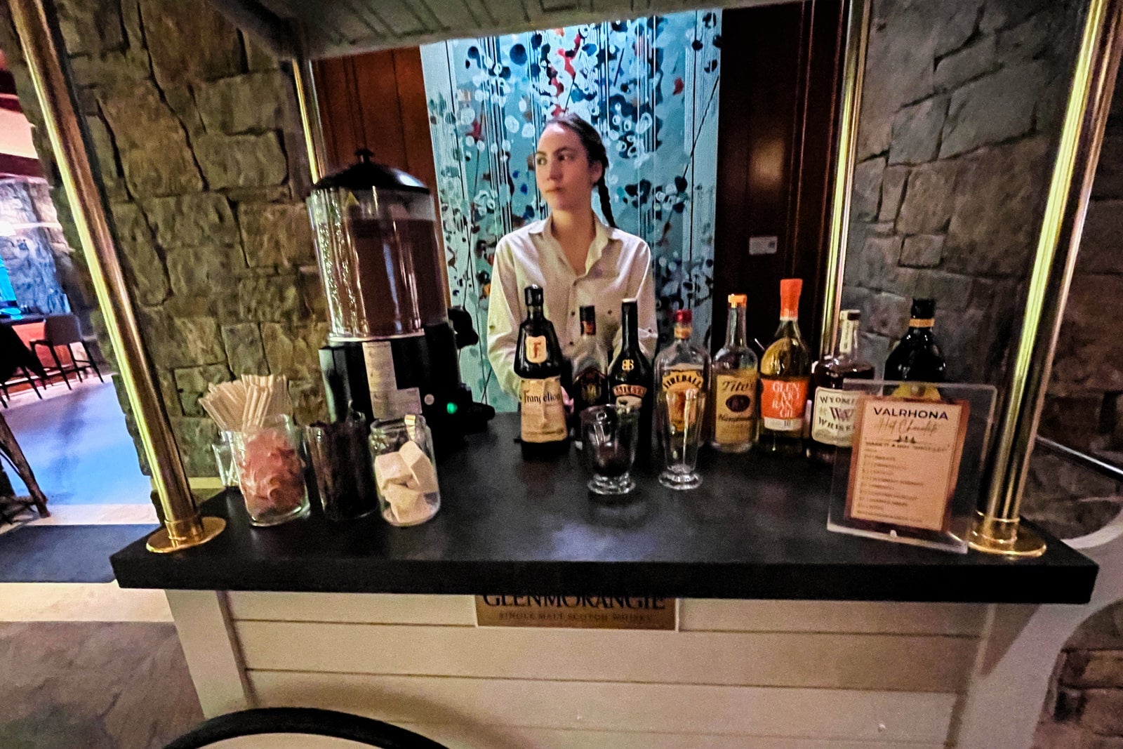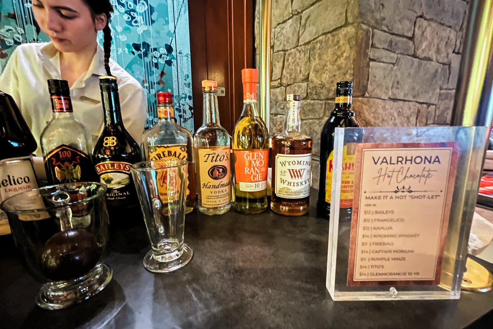 Just outside the lounge in the main lobby, you'll find the seasonal hot chocolate cart — a family favorite — with a variety of toppings. Adults can even pay extra to spike their hot chocolate.