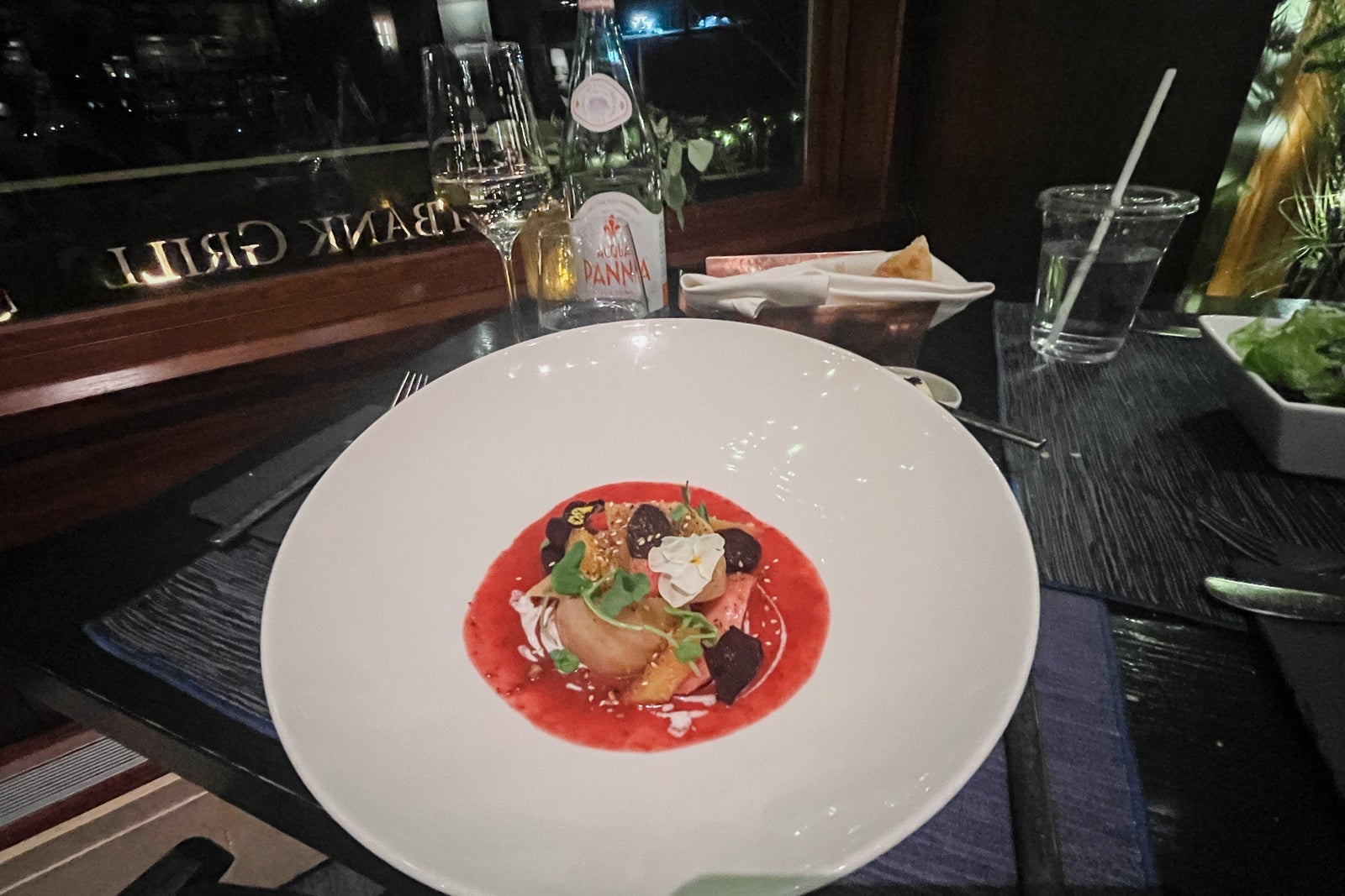 I ordered the Champagne-poached Young Beet Salad ($22) to start — served with cultured cream, Cara Cara orange, hibiscus vinaigrette and pistachio dukkah. The flavors complemented each other nicely.