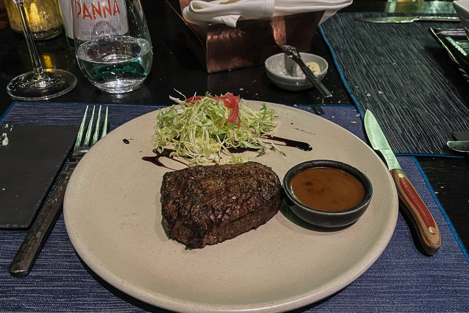 Dinner here is quite the treat; not only is the service fantastic and the views of the mountain breathtaking, but also the food is delicious. I love a good steak (especially if it's cooked for me rather than by me), and I was not disappointed.