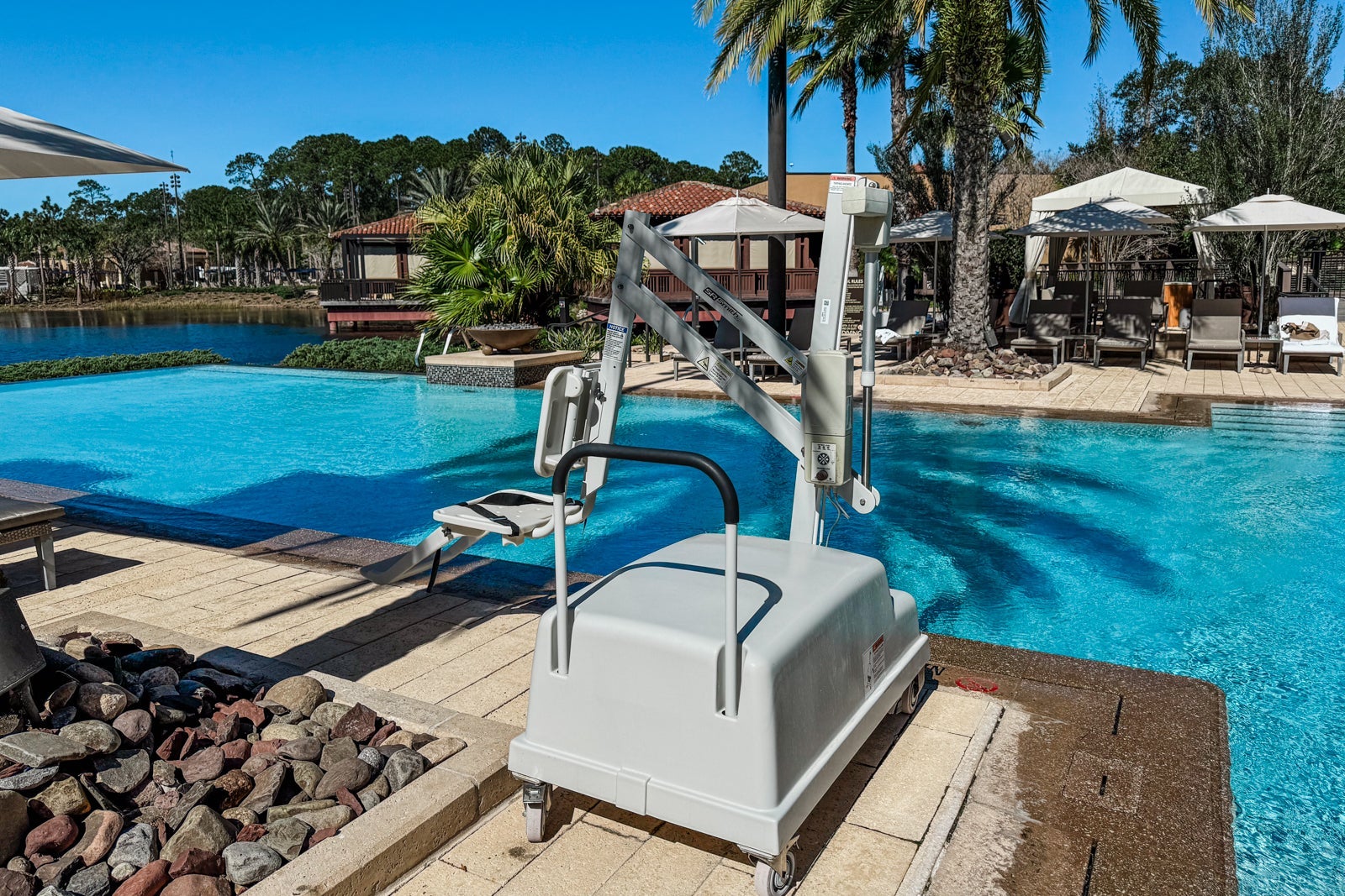 The other facilities, including the restaurants, the spa and the fitness center, are accessible via wheelchair thanks to elevators, non-step entrances and either roll-in entry or chair lifts into the pools. Service animals are also permitted throughout.