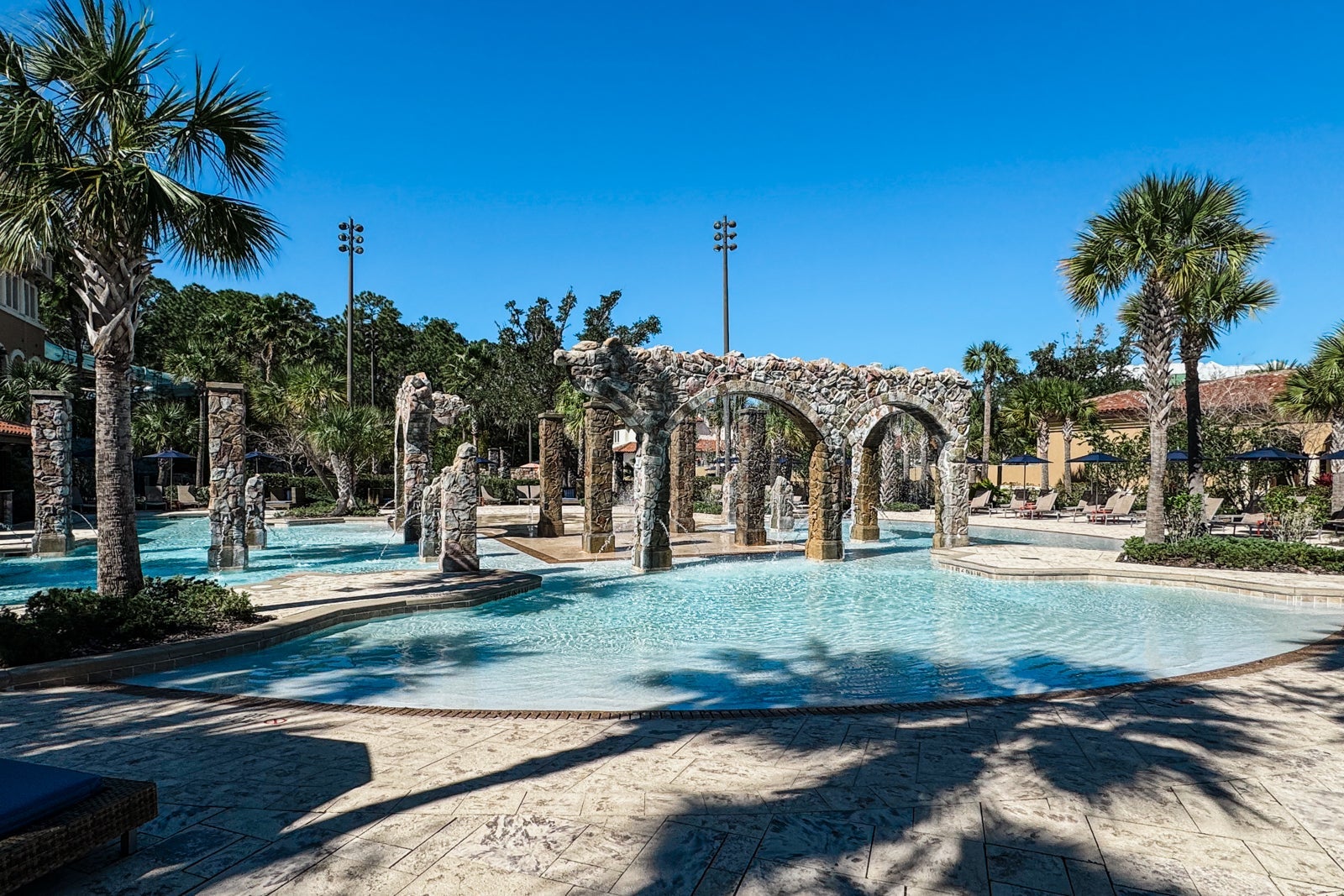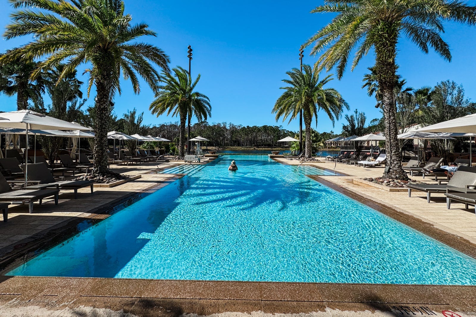 There are several pool and water features for guests to relax or play in. Closest to the main hotel tower, the adults-only Oasis Pool looks out over the lake and is surrounded by loungers and cabanas.