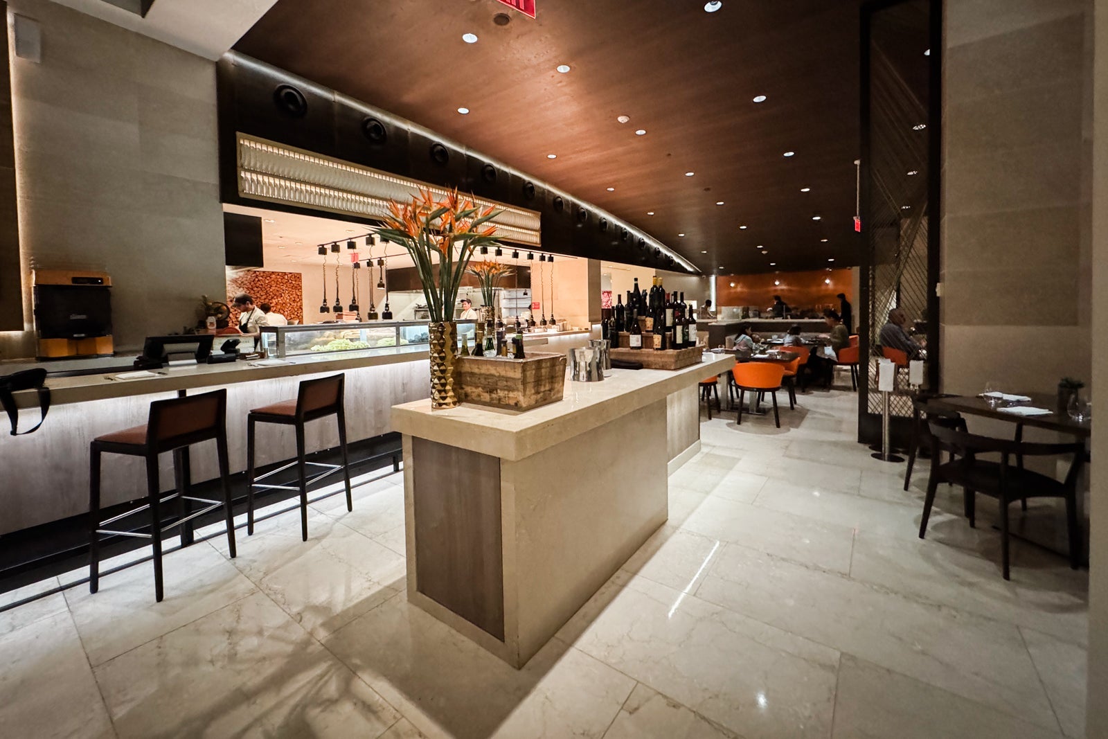 Down one level from the lobby, Ravello is the hotel's upscale Italian spot serving breakfast and dinner. There's a well-provisioned buffet available with everything from fresh fruit and pastries to charcuterie and eggs ($42 per adult and $22 for kids 12 and under). The a la carte menu includes dishes like savory huevos rancheros with avocado over corn tortillas ($24) and avocado toast on multigrain bread with cherry tomatoes and mozzarella ($21).