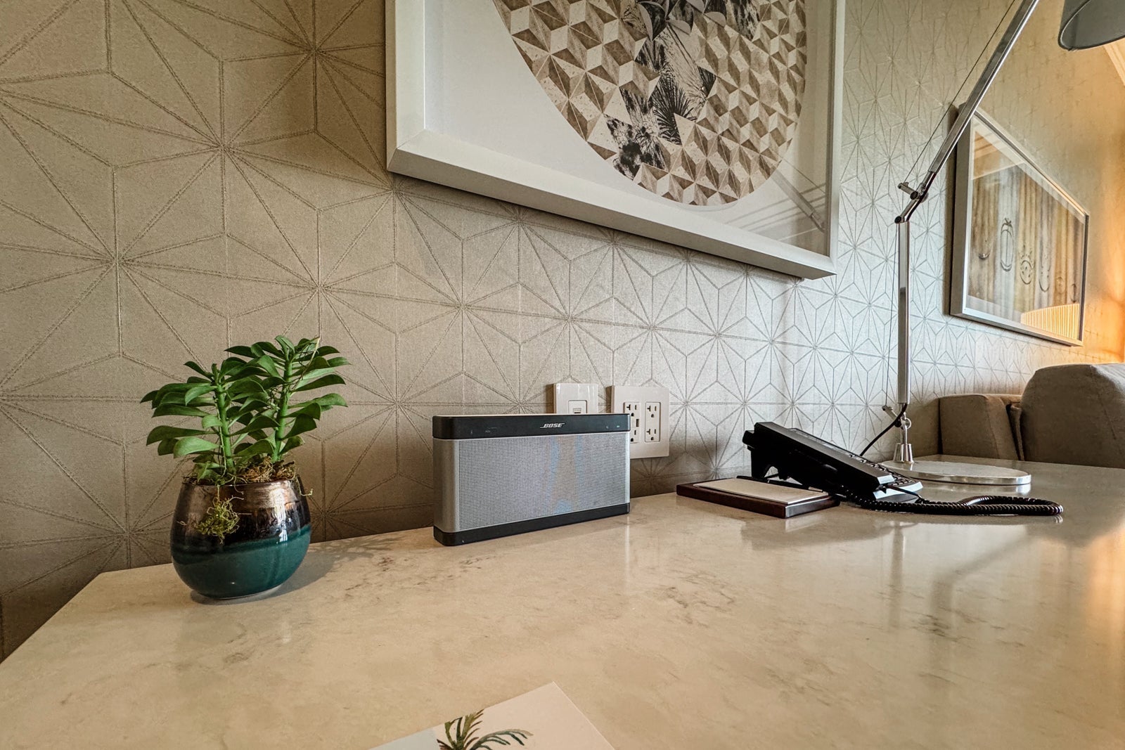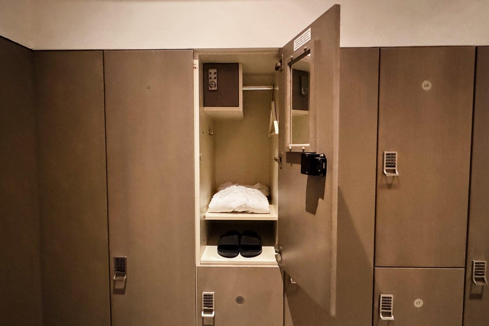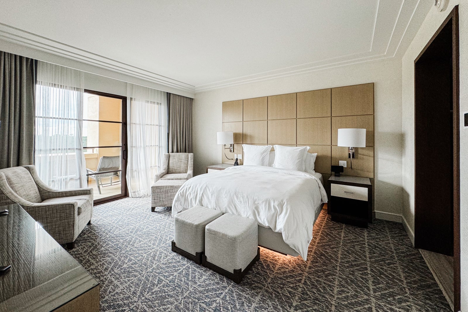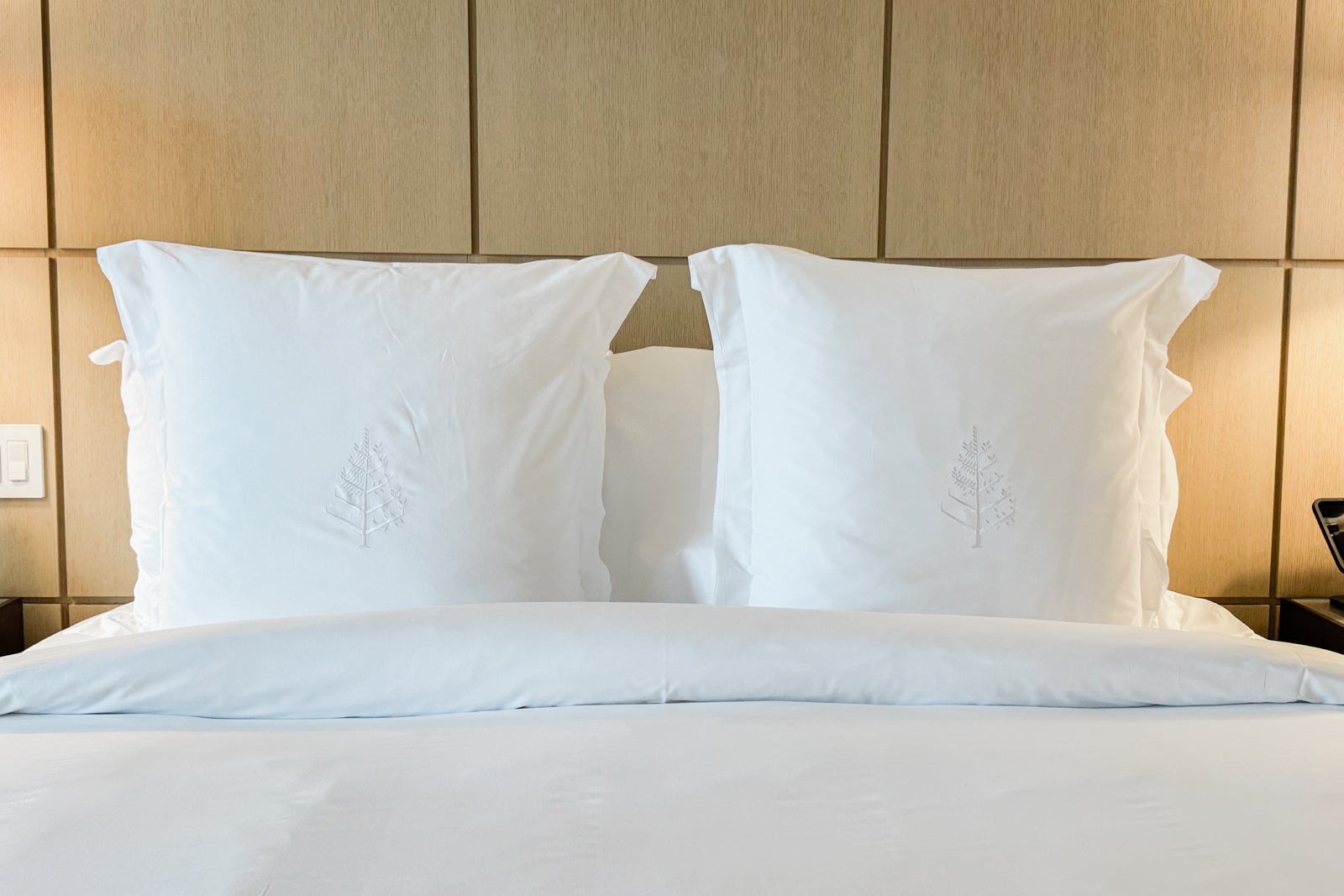 To either side of the bed were panels with light switches, power plugs and USB ports, as well as simple nightstands with reading lights. On one, I found a tablet through which I could peruse the resort's amenities and request services like housekeeping or for the valet to bring my car around.